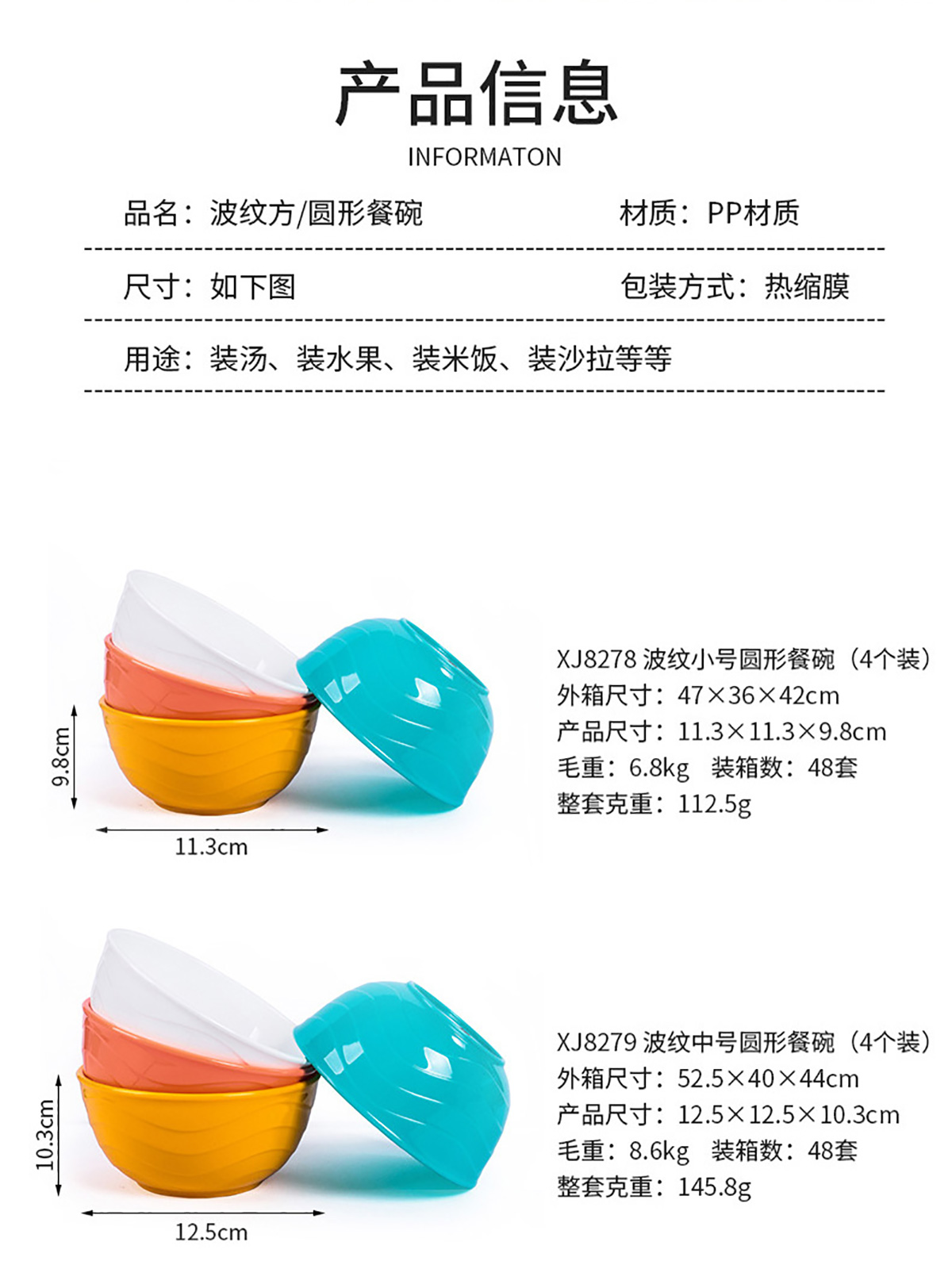 波紋圓形/方形餐碗  小號(hào)/中號(hào)/大號(hào)(4個(gè)裝)