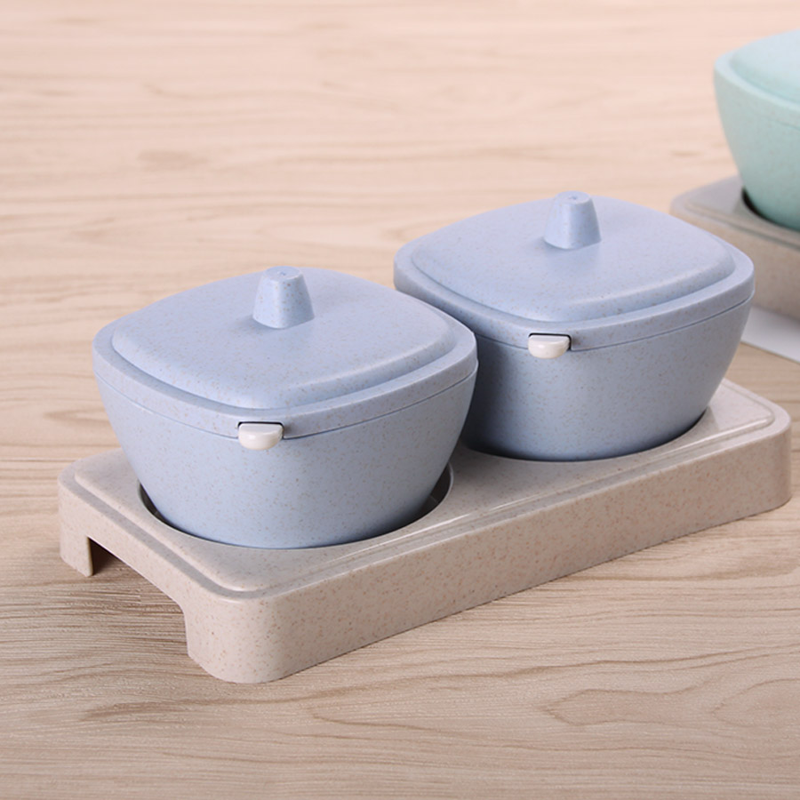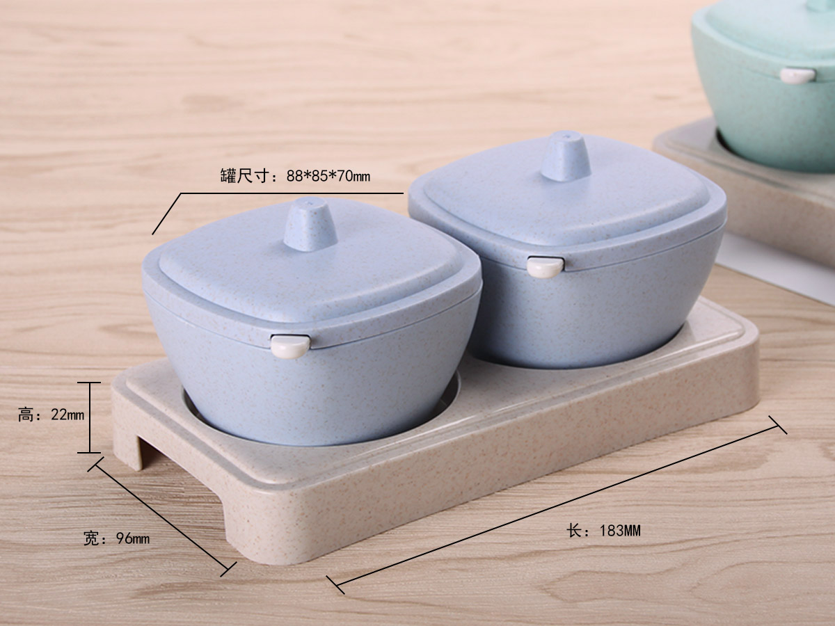 方形日式麥秸稈調(diào)味罐二件套