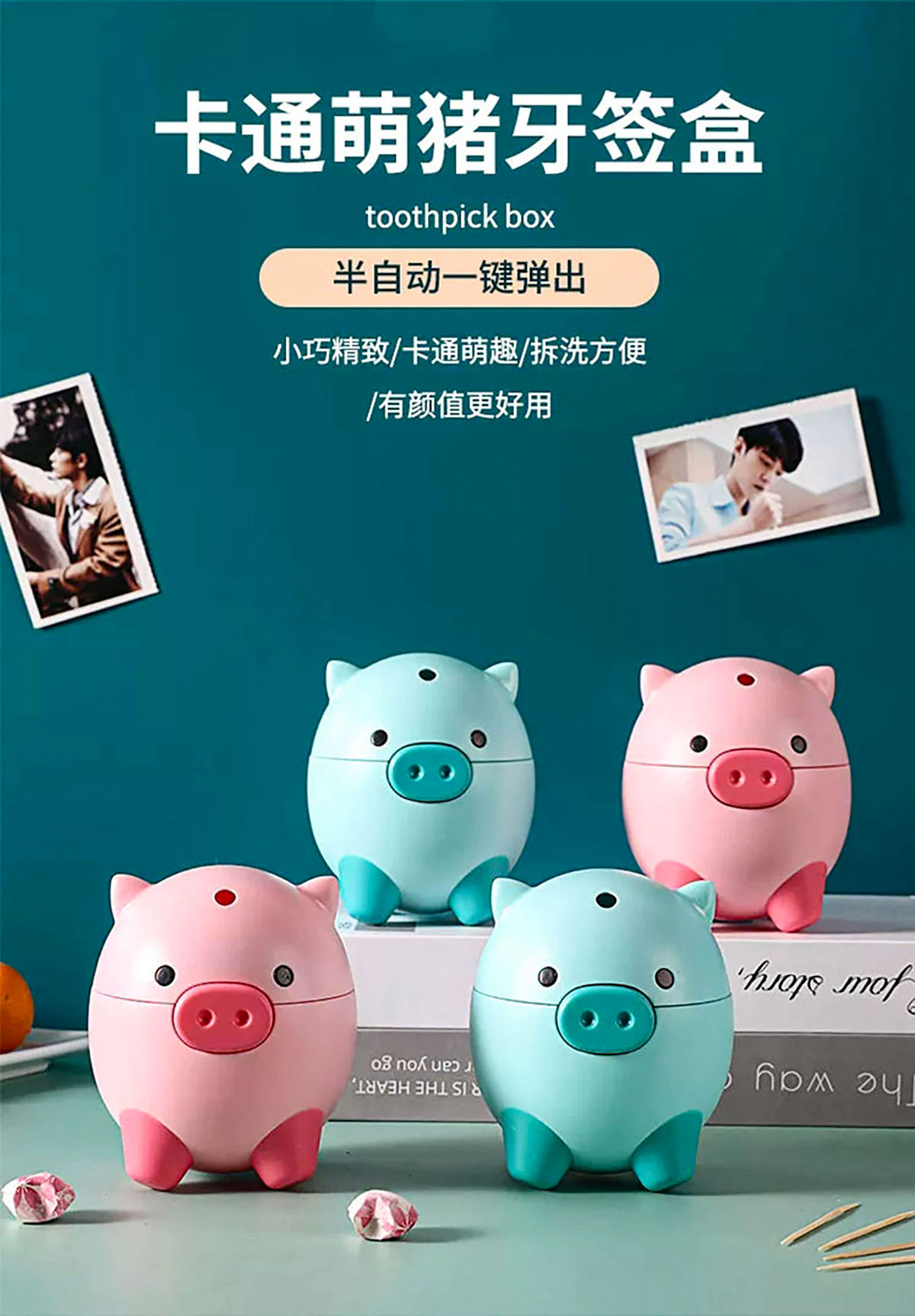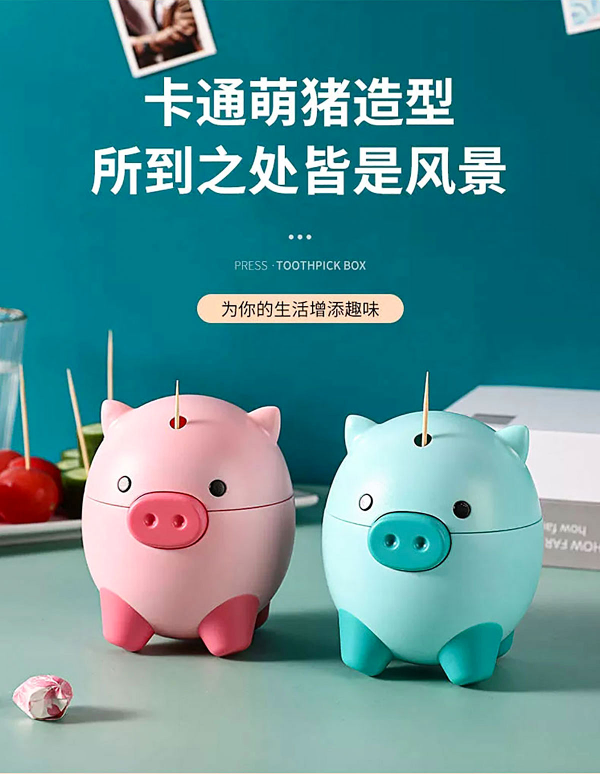 卡通萌豬自動(dòng)牙簽瓶