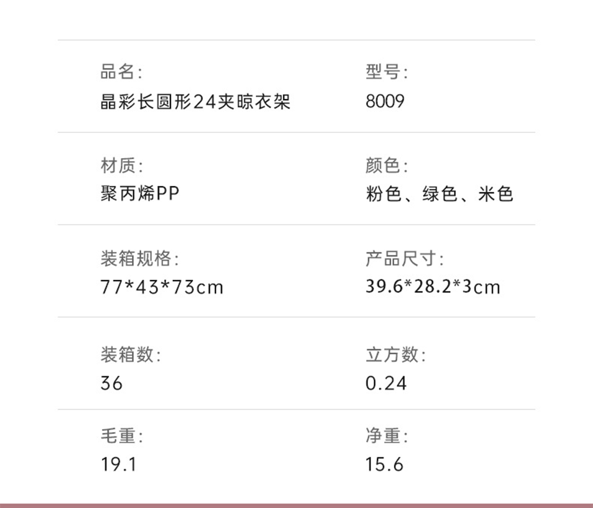 晶彩長(zhǎng)圓形24夾晾衣架 2023年新色