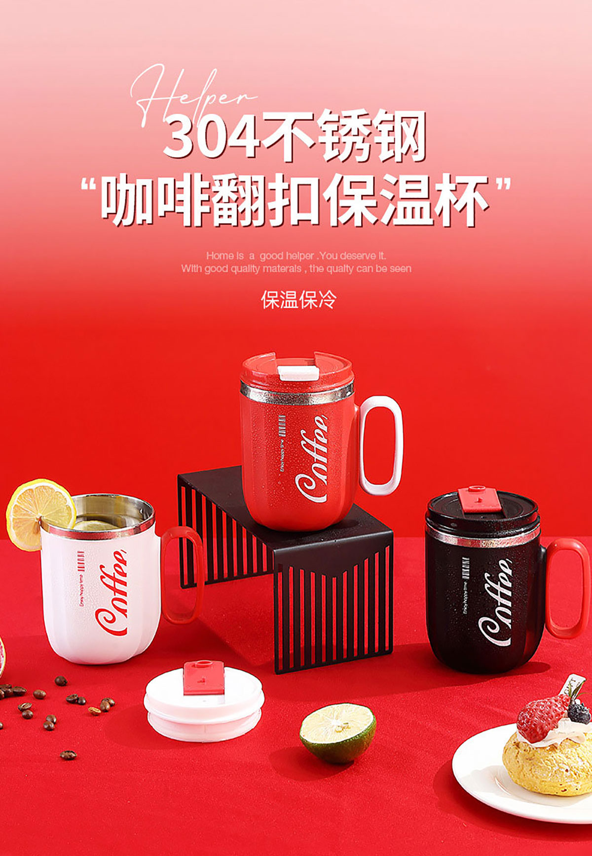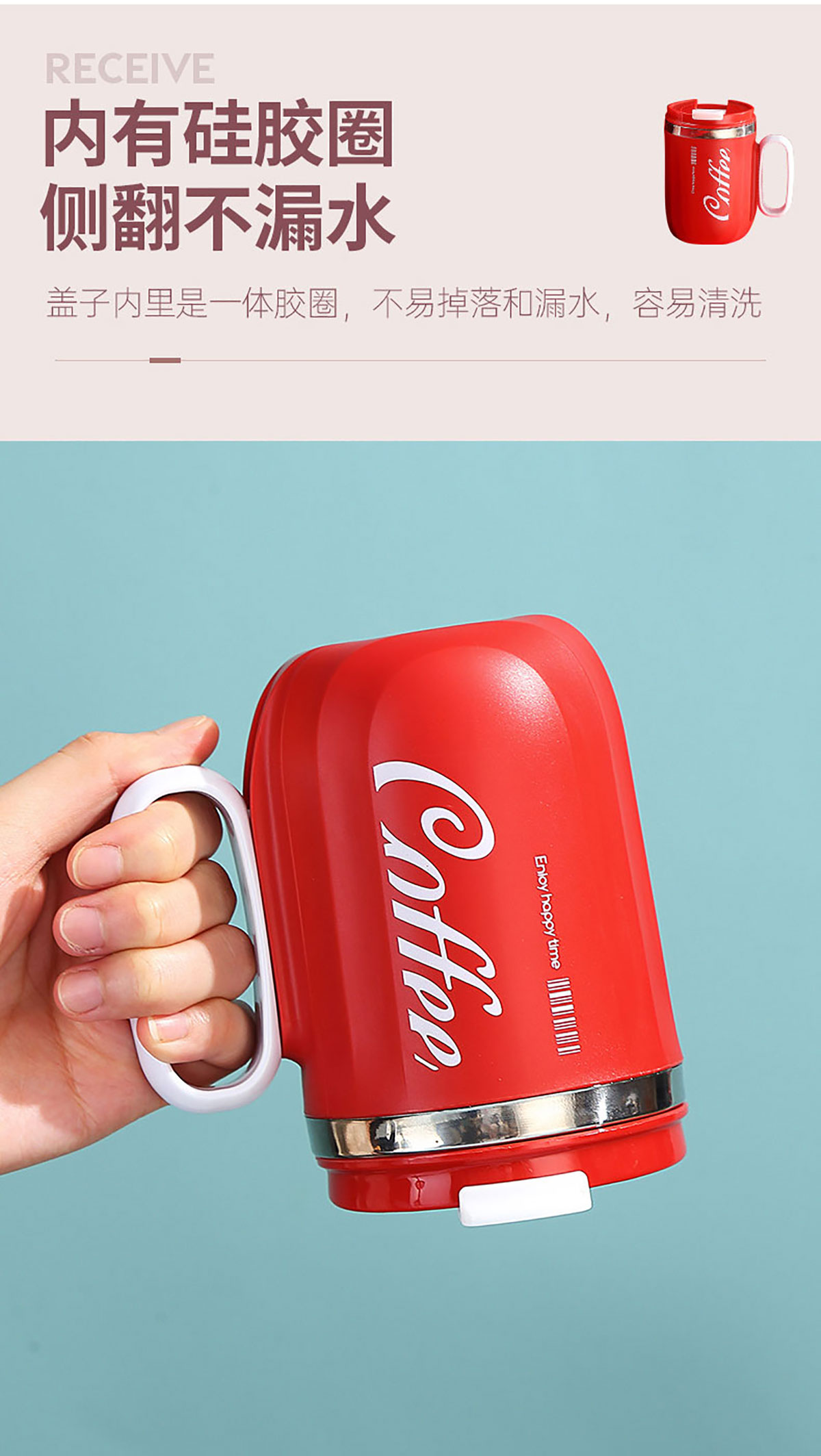 400ml咖啡304不銹鋼翻扣保溫杯(帶手柄)