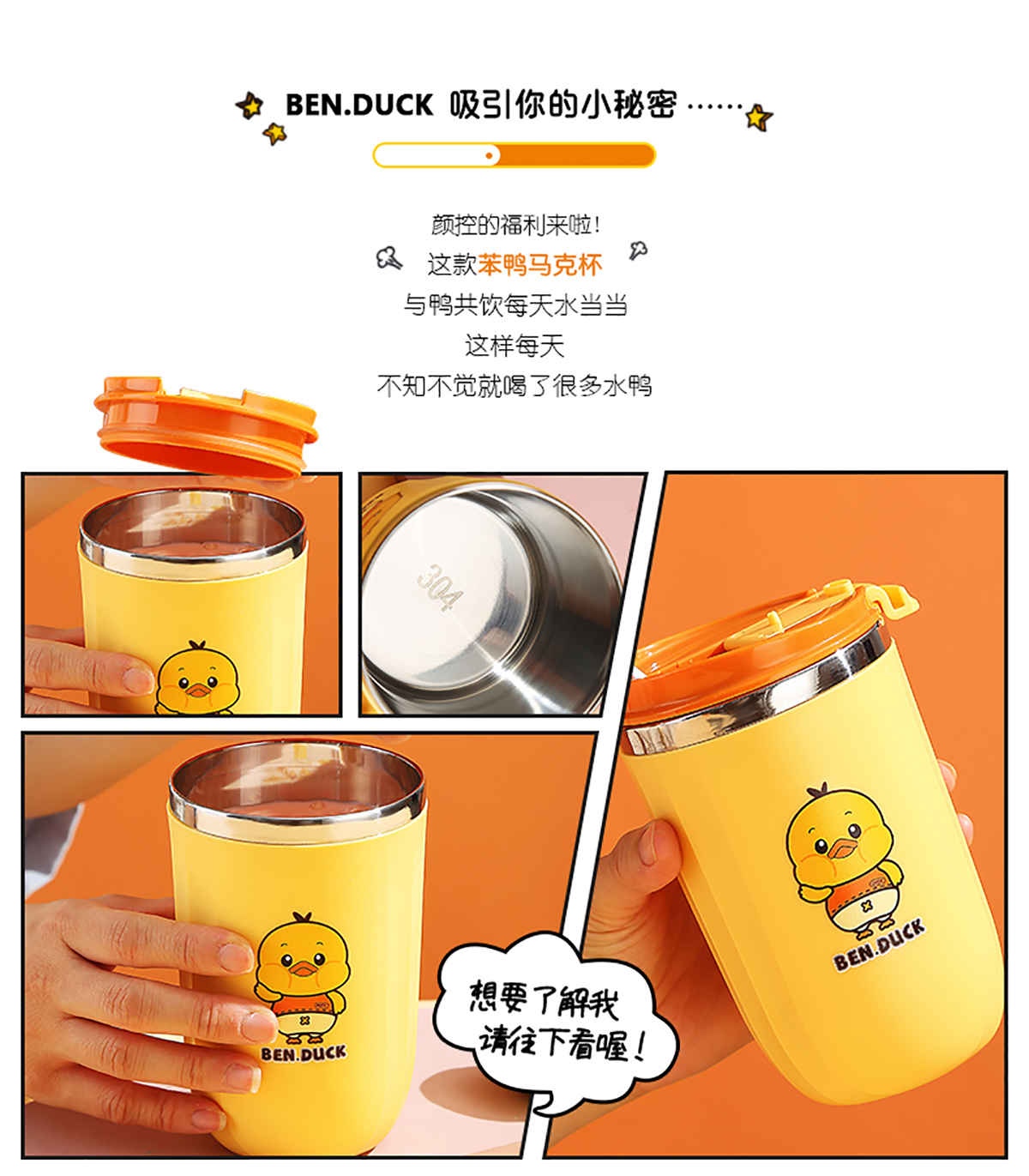 450ml笨鴨304不銹鋼翻扣保溫杯