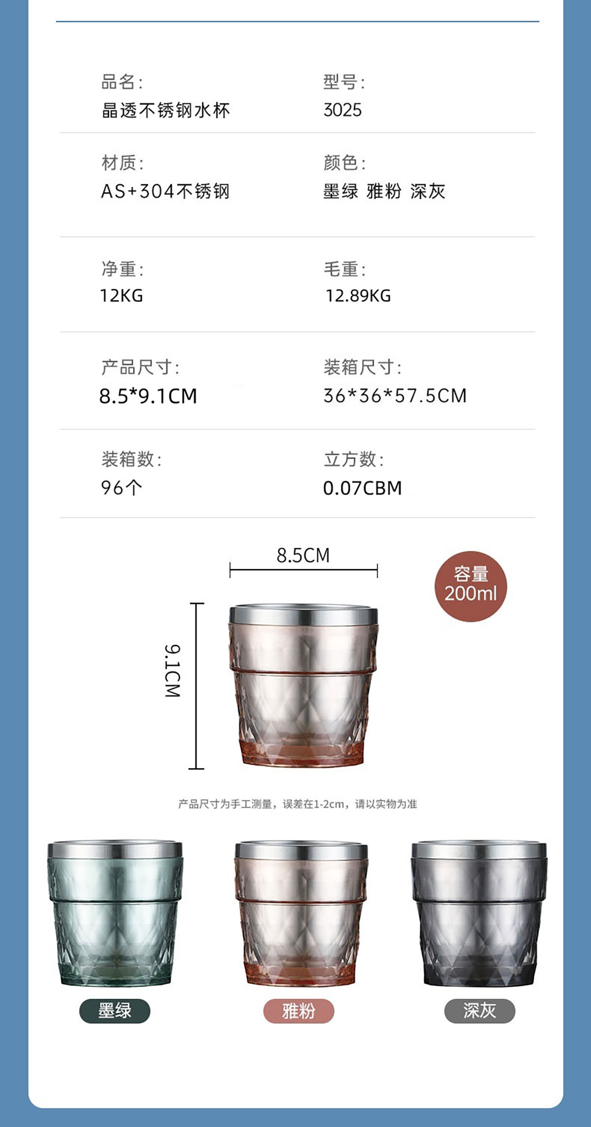 晶透不銹鋼水杯套裝