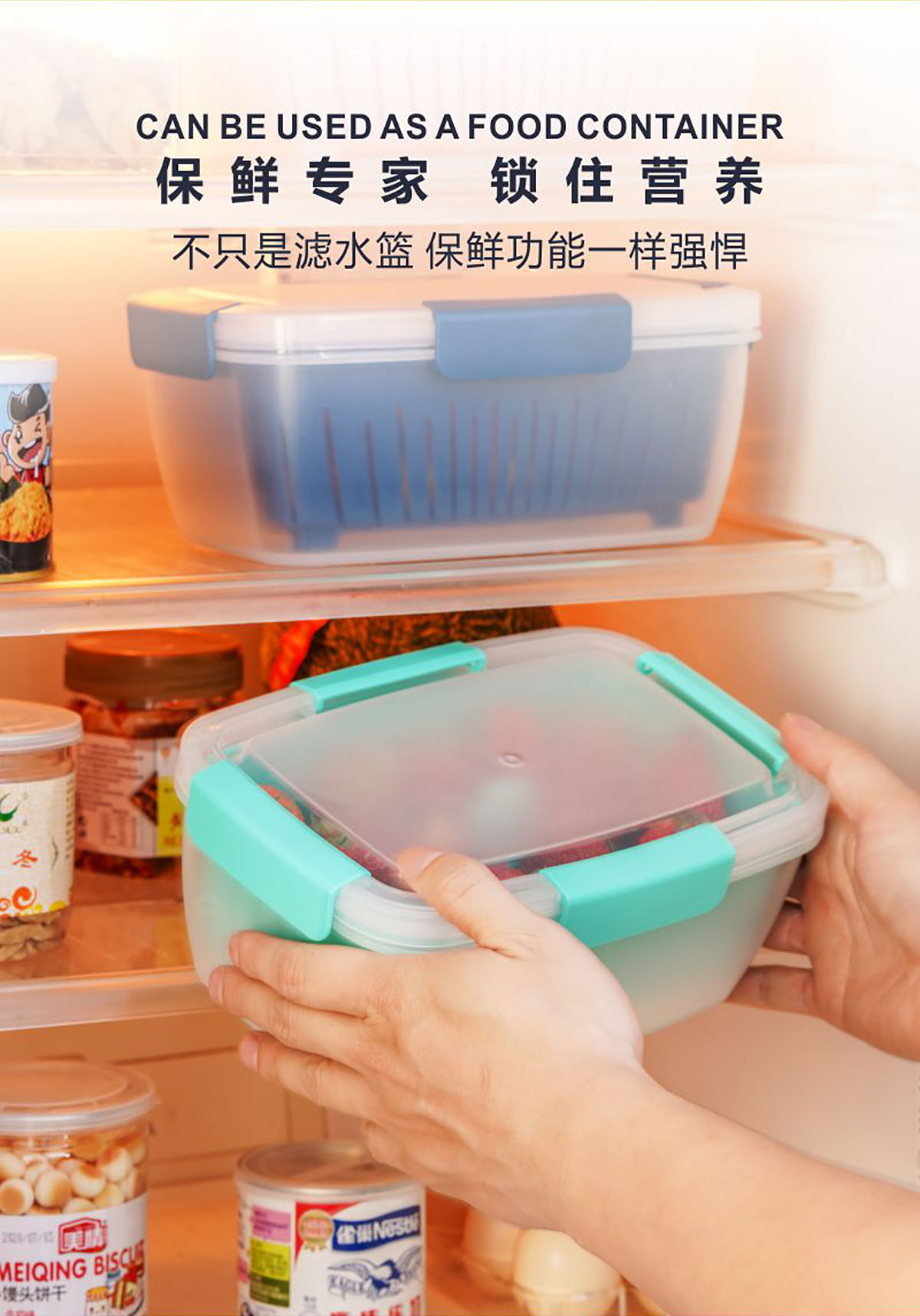 四面扣瀝水保鮮盒長(zhǎng)方形2L 22年新色