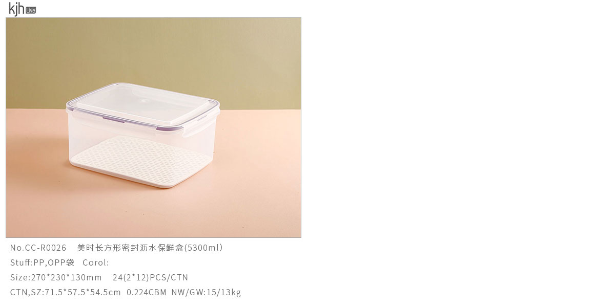 美時(shí)長(zhǎng)方形密封瀝水保鮮盒(500ml/1150ml/2150ml/3380ml/5300ml)