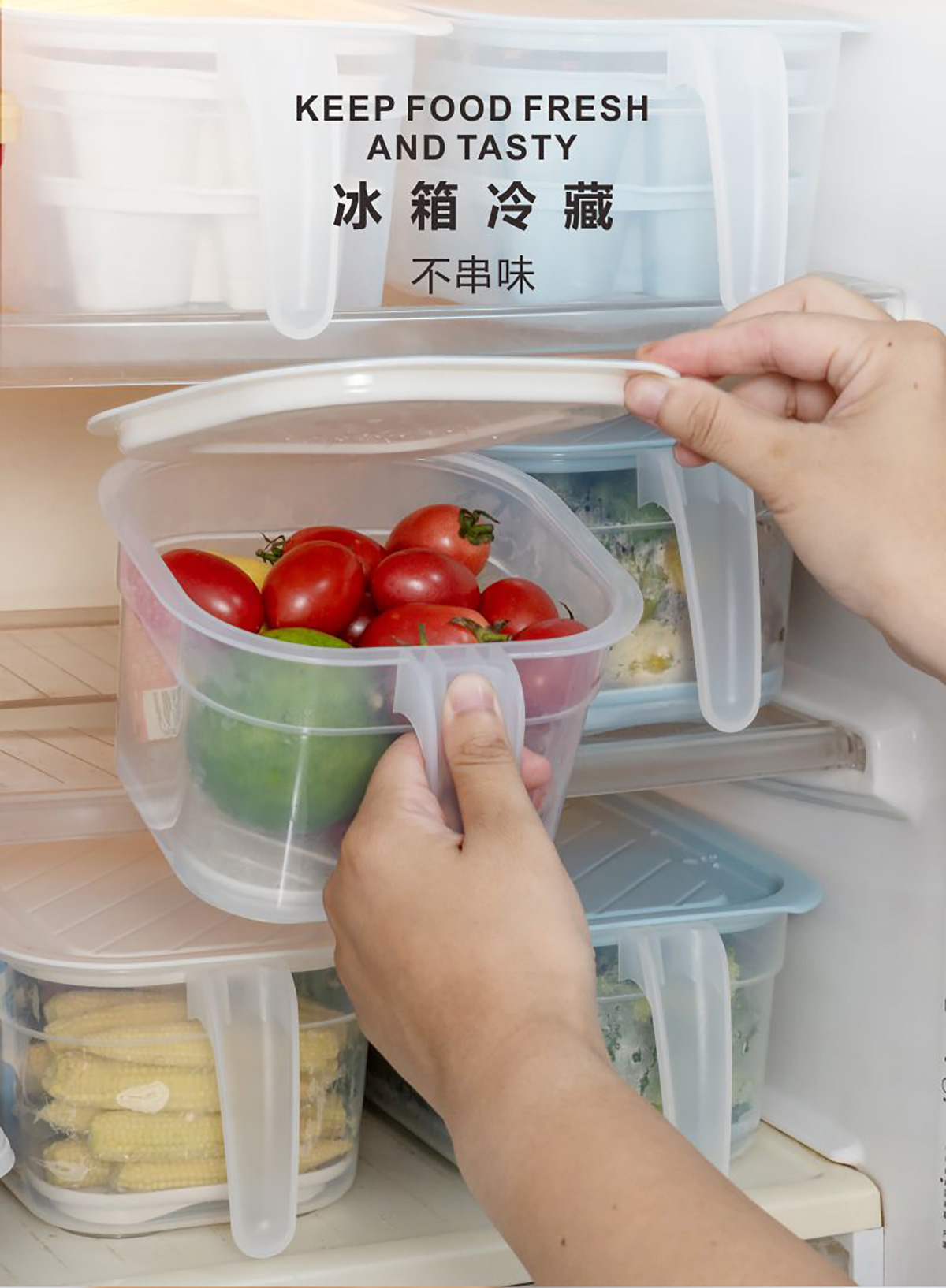 冰鮮手握式瀝水保鮮盒(正方形)1.4L