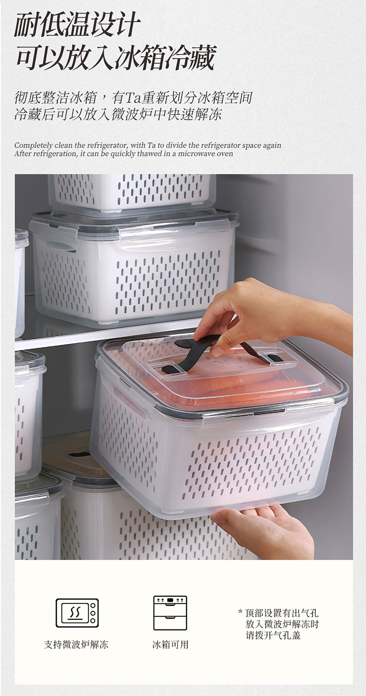 三件/四件/五件/六件套手提長方形密封瀝水保鮮盒