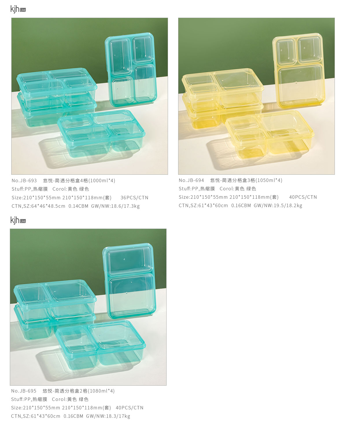 Size: JB-693(4格):210*150*55mm 210*150*118mm(套)