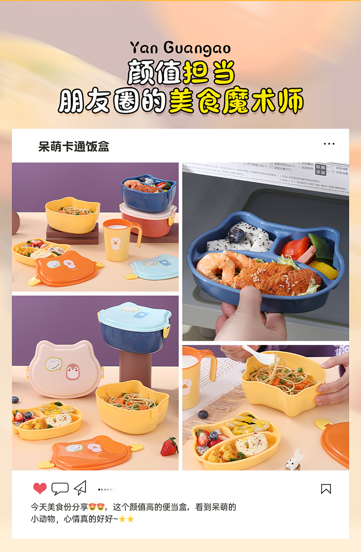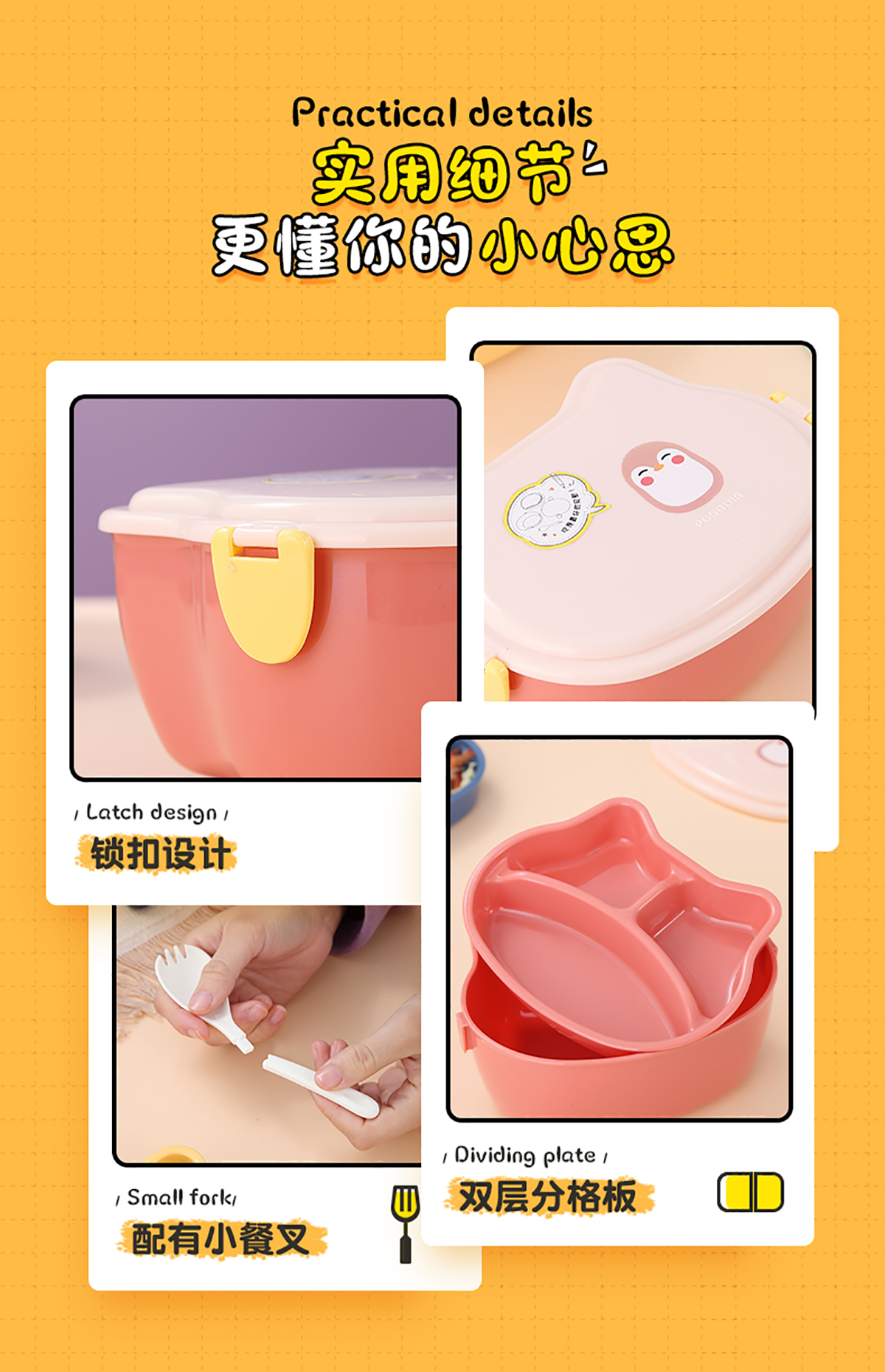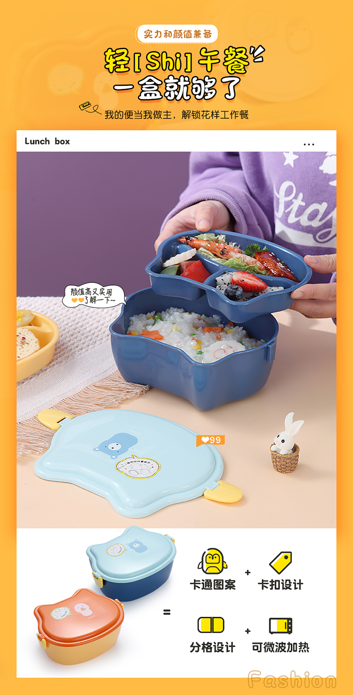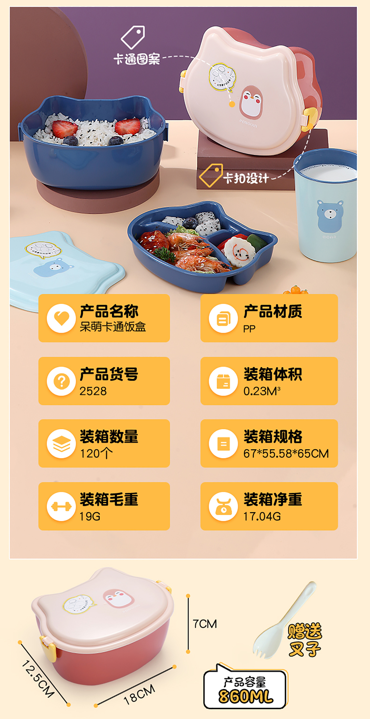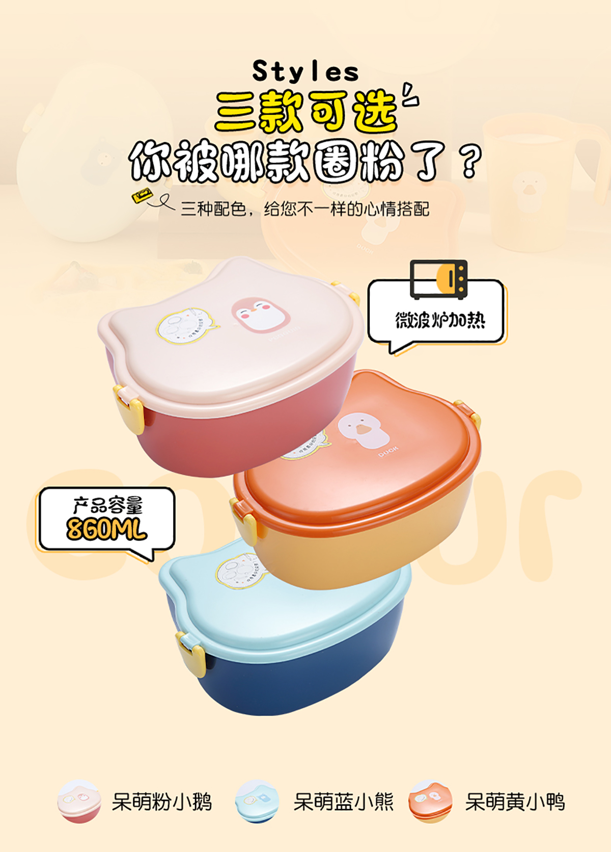860ml呆萌卡通飯盒
