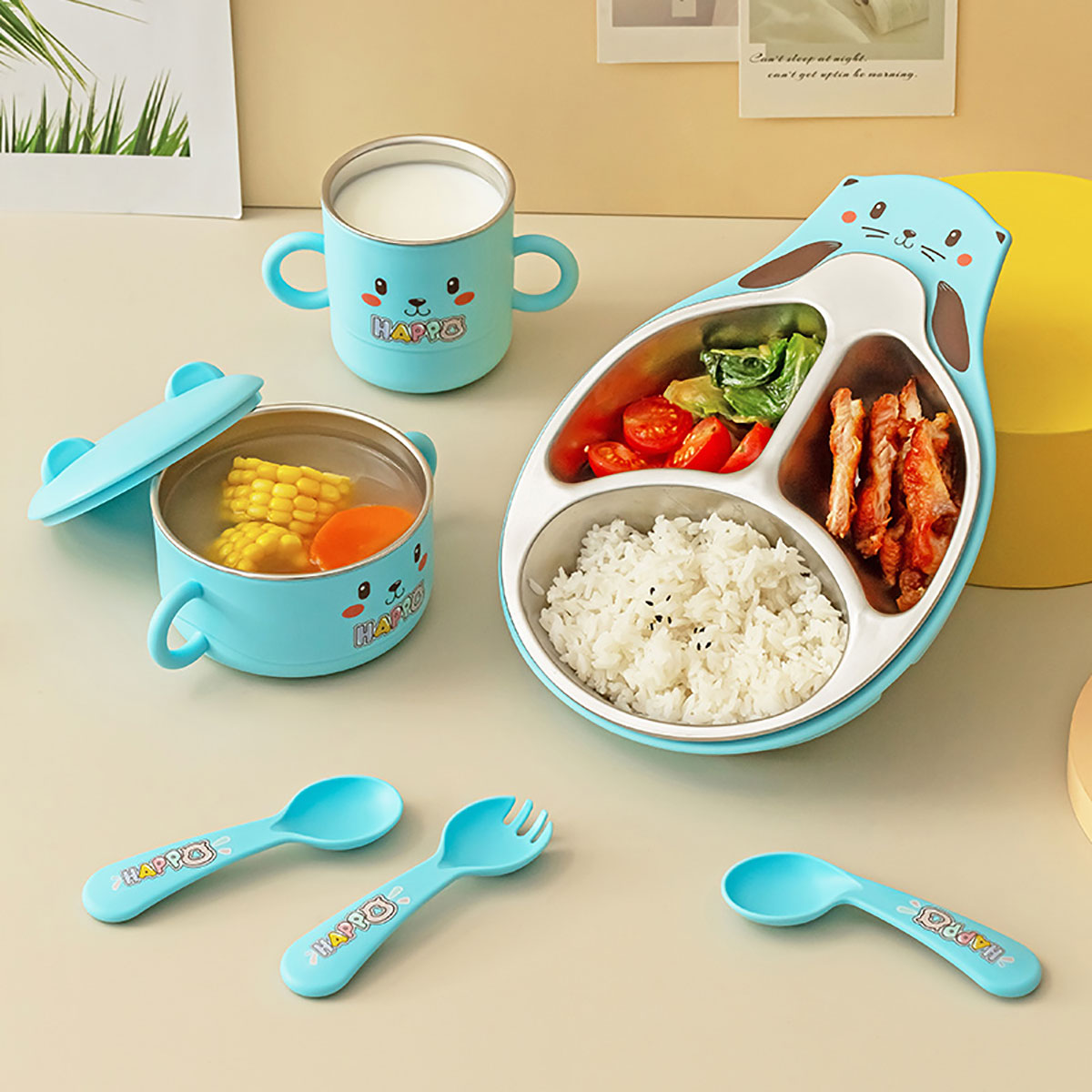 可兒萌獺不銹鋼套裝兒童餐具
