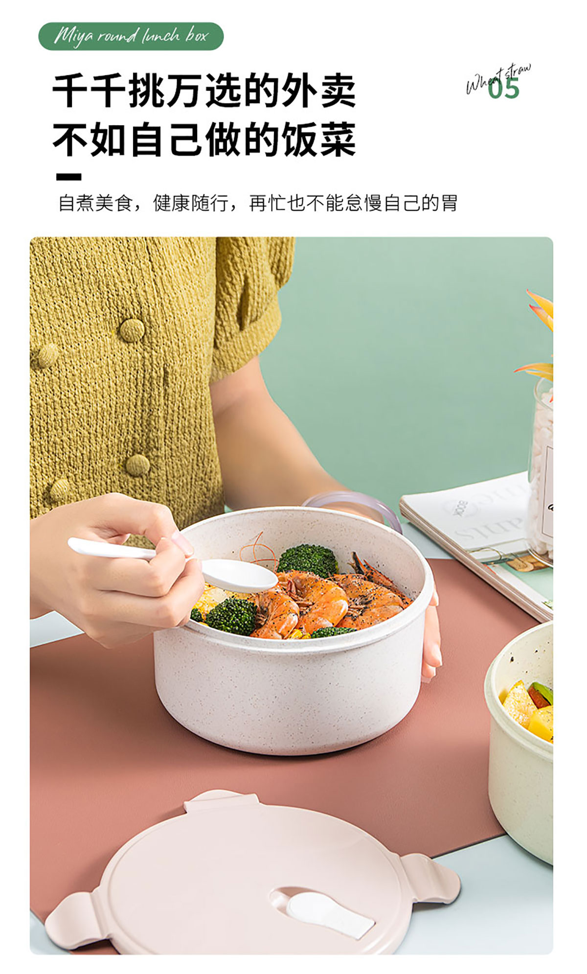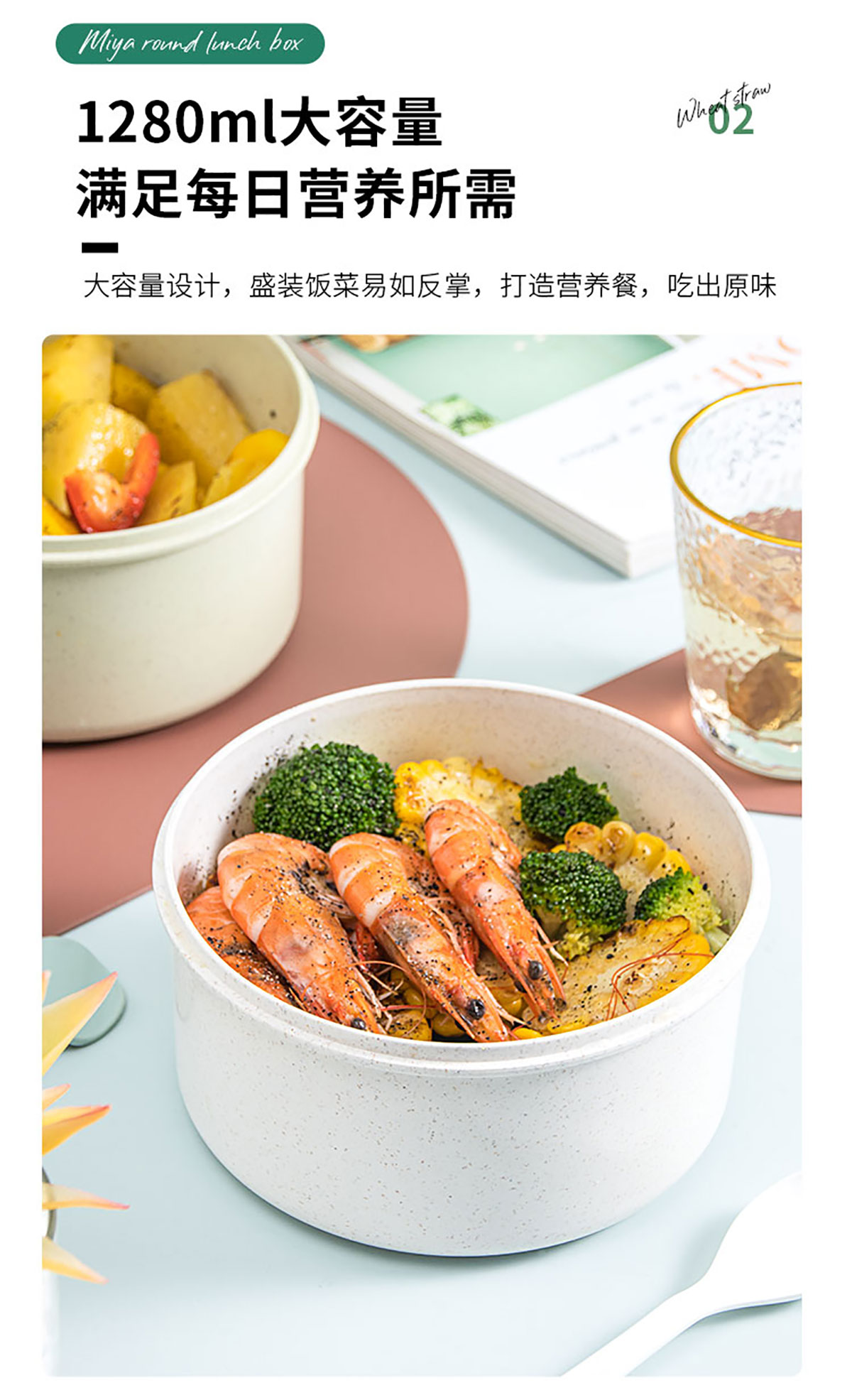 蜜雅圓形便當盒(1280ml)