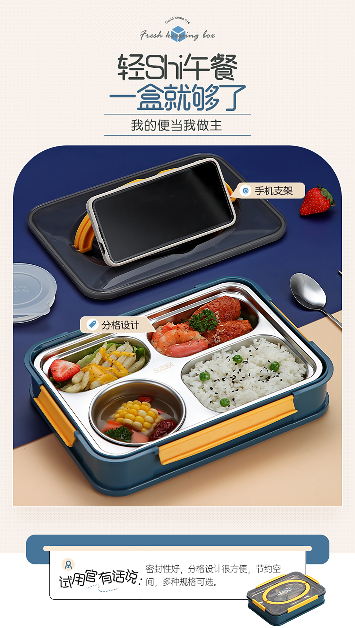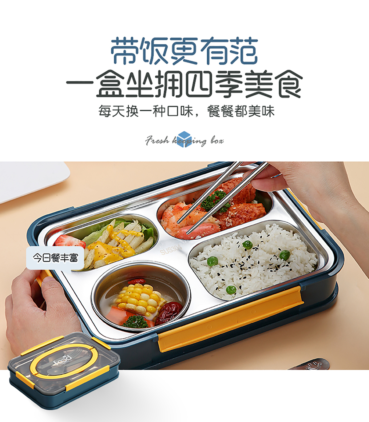 AQX-2523B(4格帶湯碗):260*185*60mm