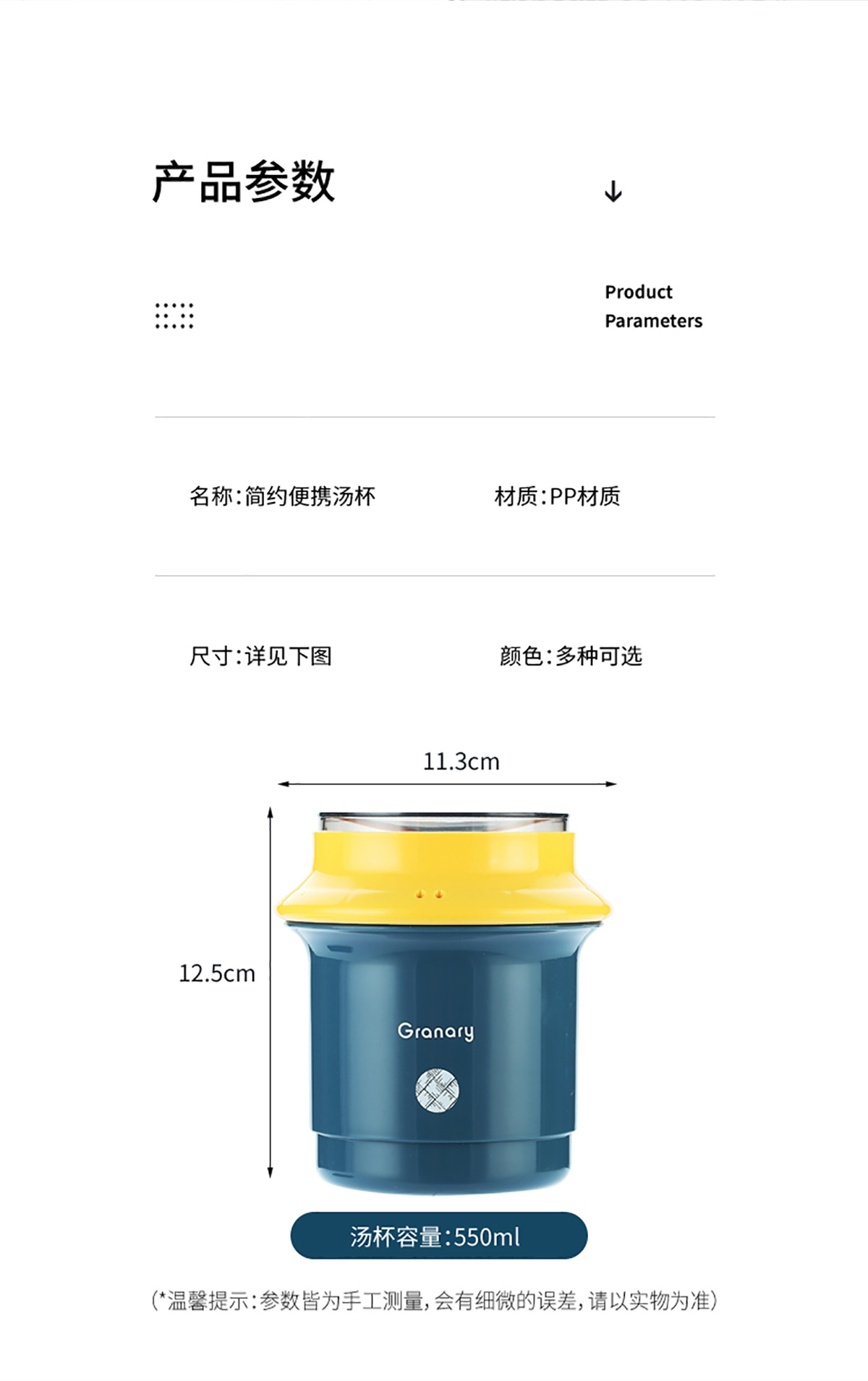 圓形糧倉塑料湯杯550ml