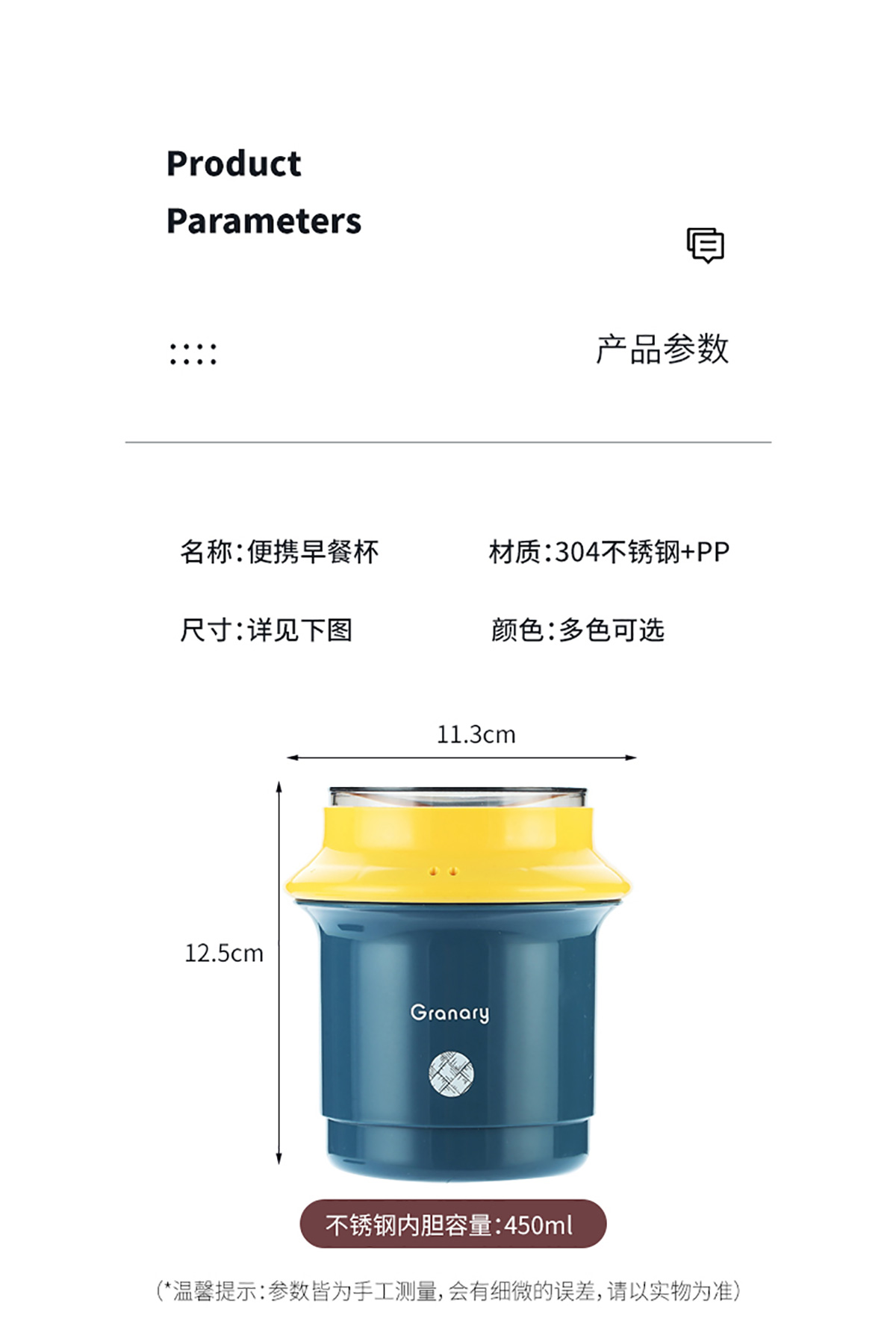圓形糧倉(cāng)不銹鋼湯杯550ml