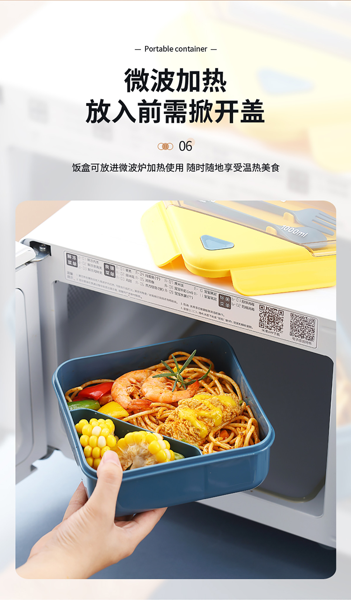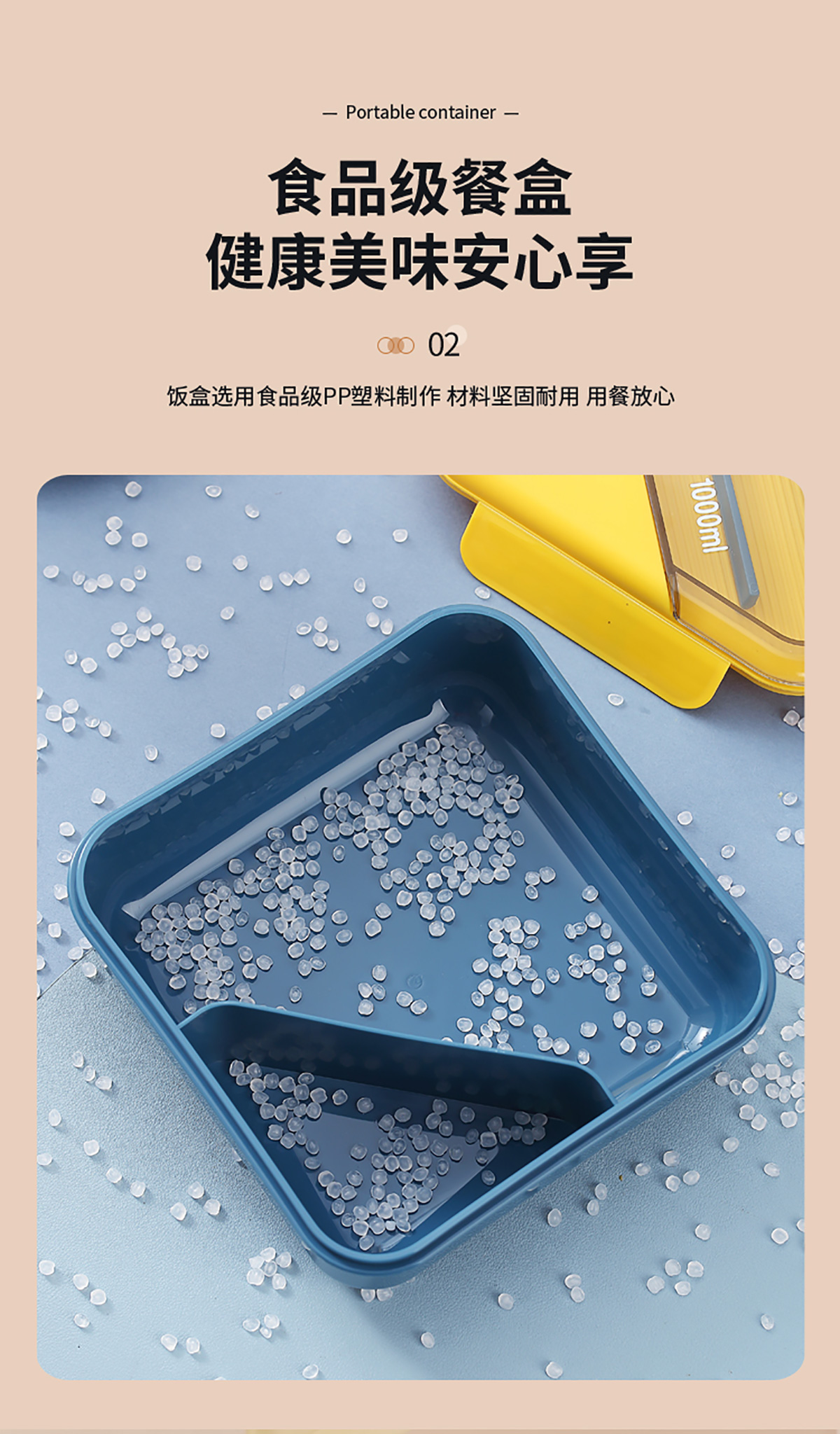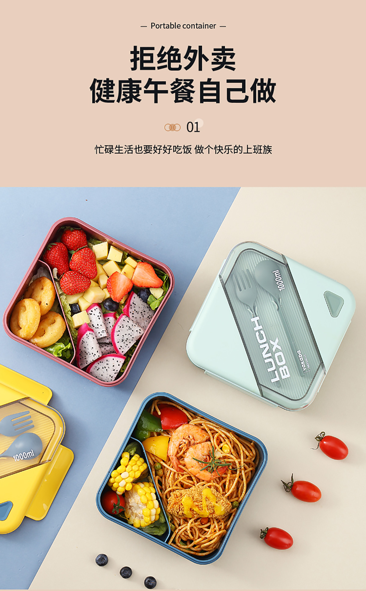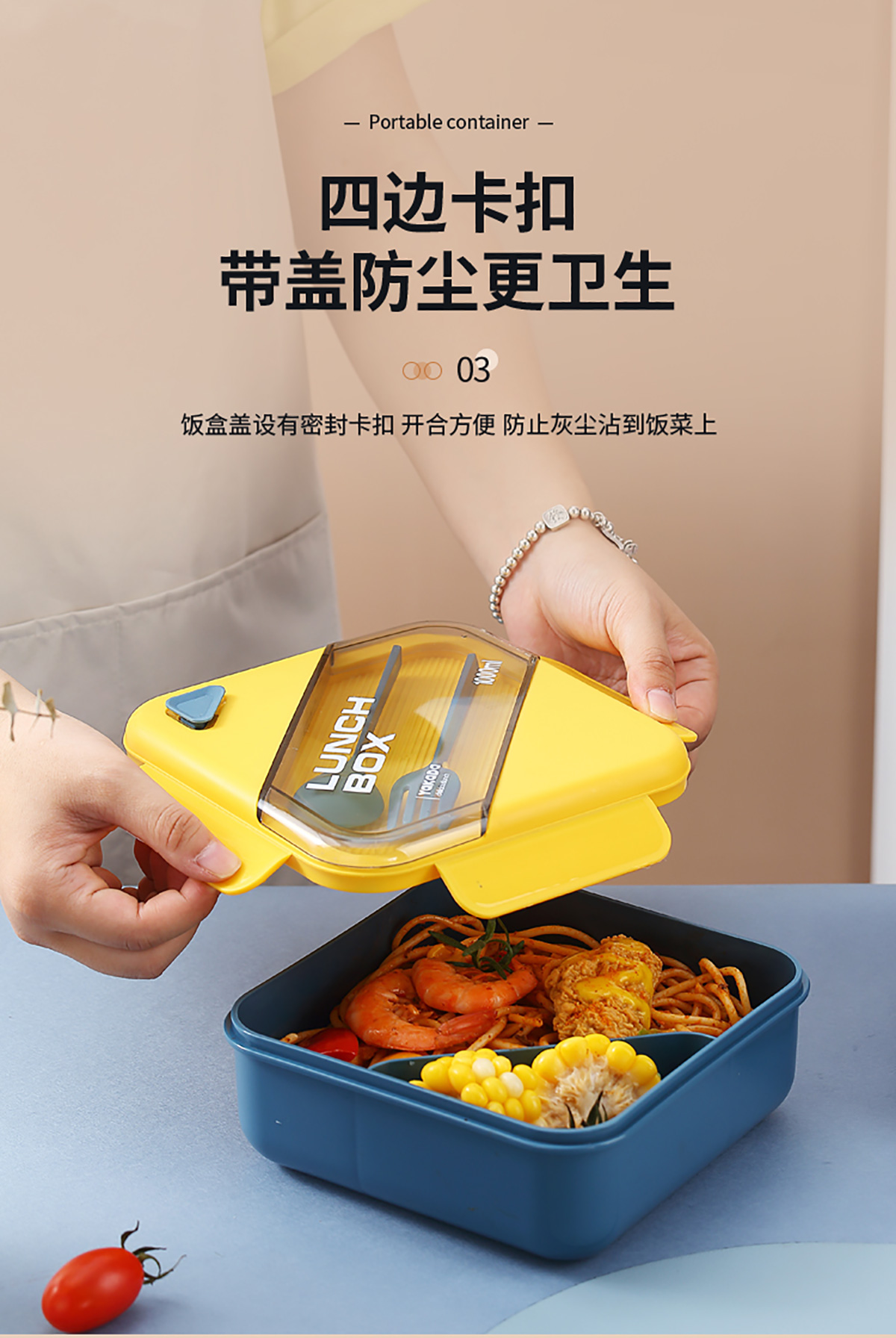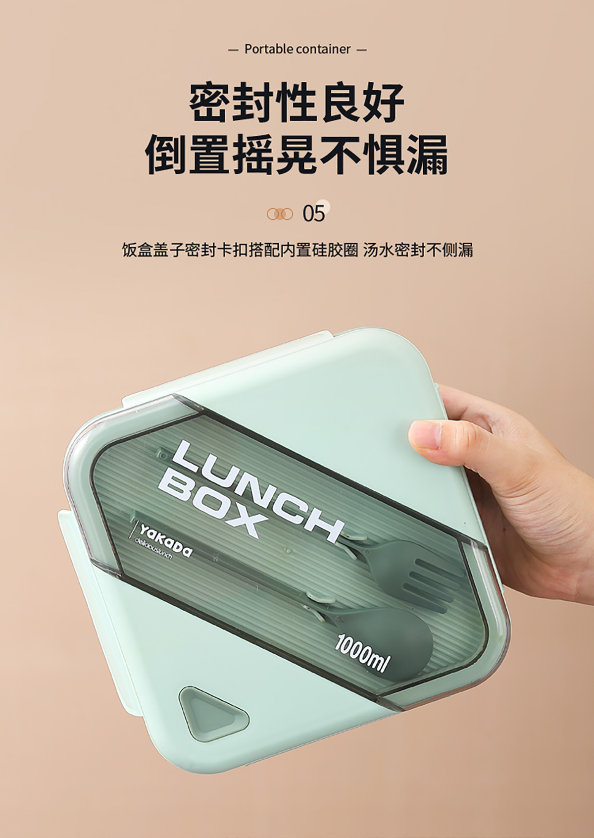 四方長條透明蓋飯盒1000ml