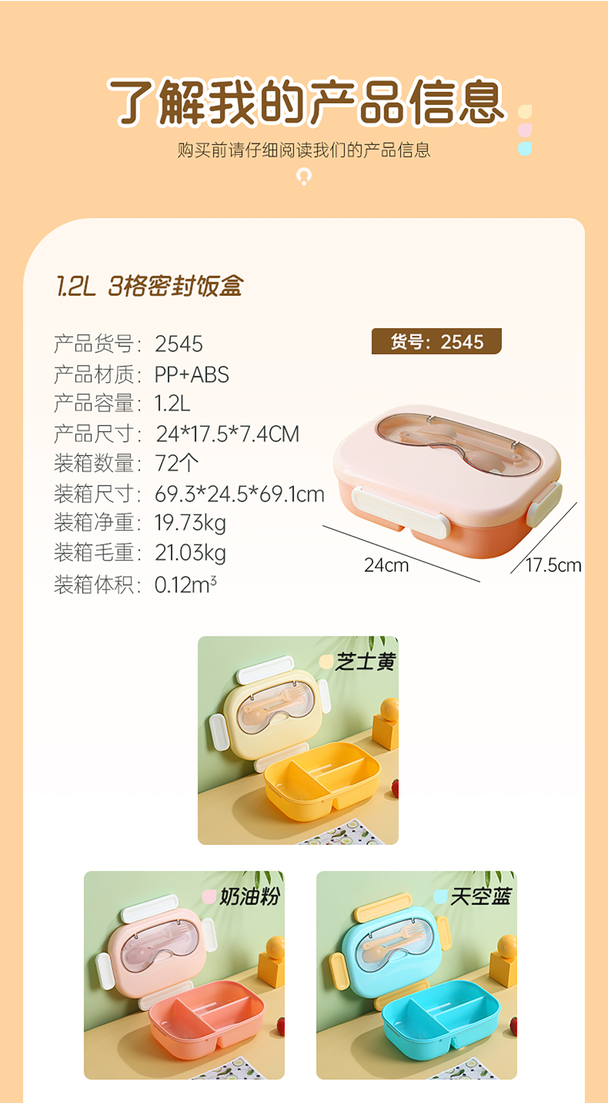 AQX-2545(3格/1.2L):240*175*74mm
