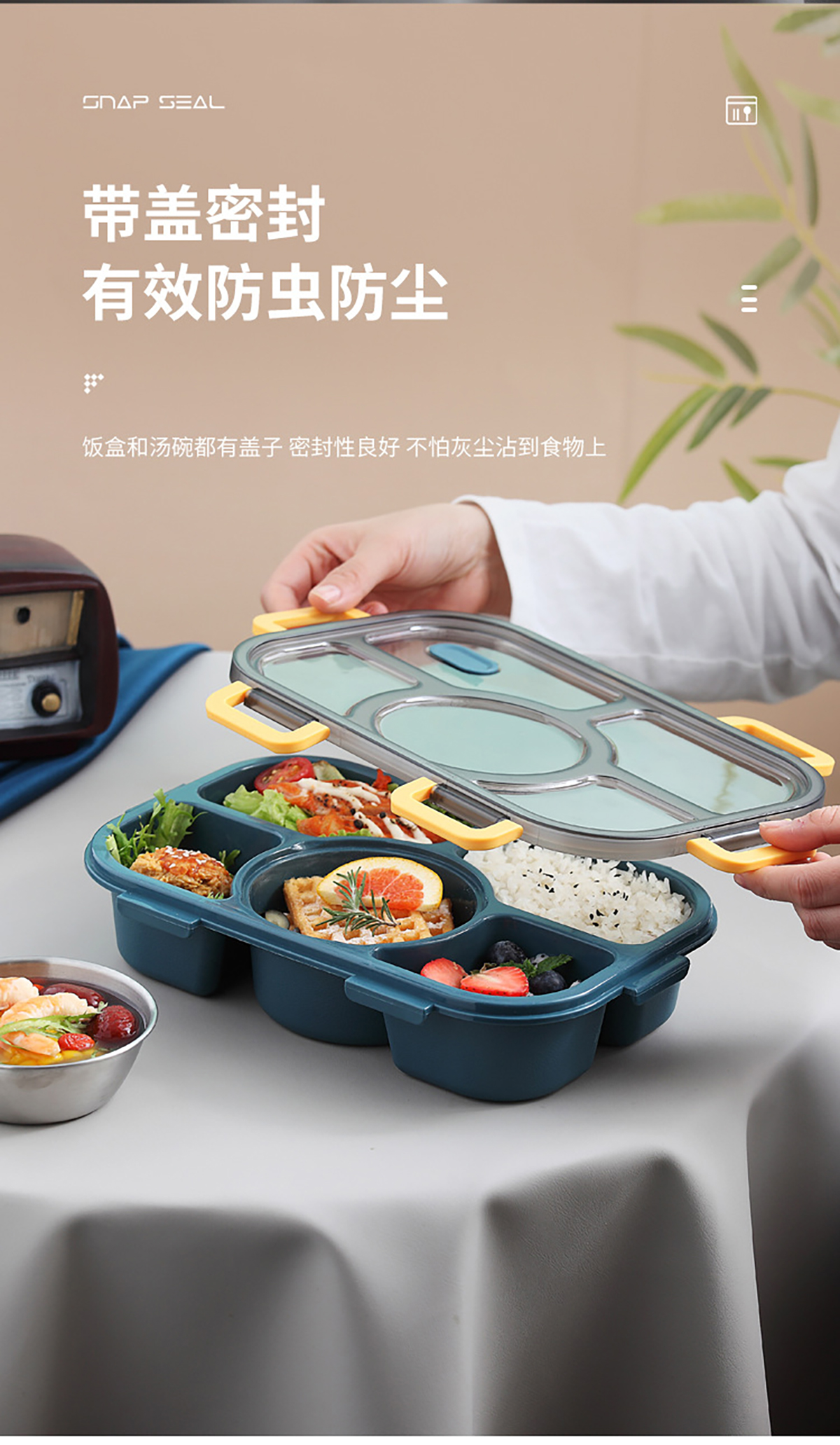 304湯碗五格/五格帶湯杯餐盤(pán)1400ml