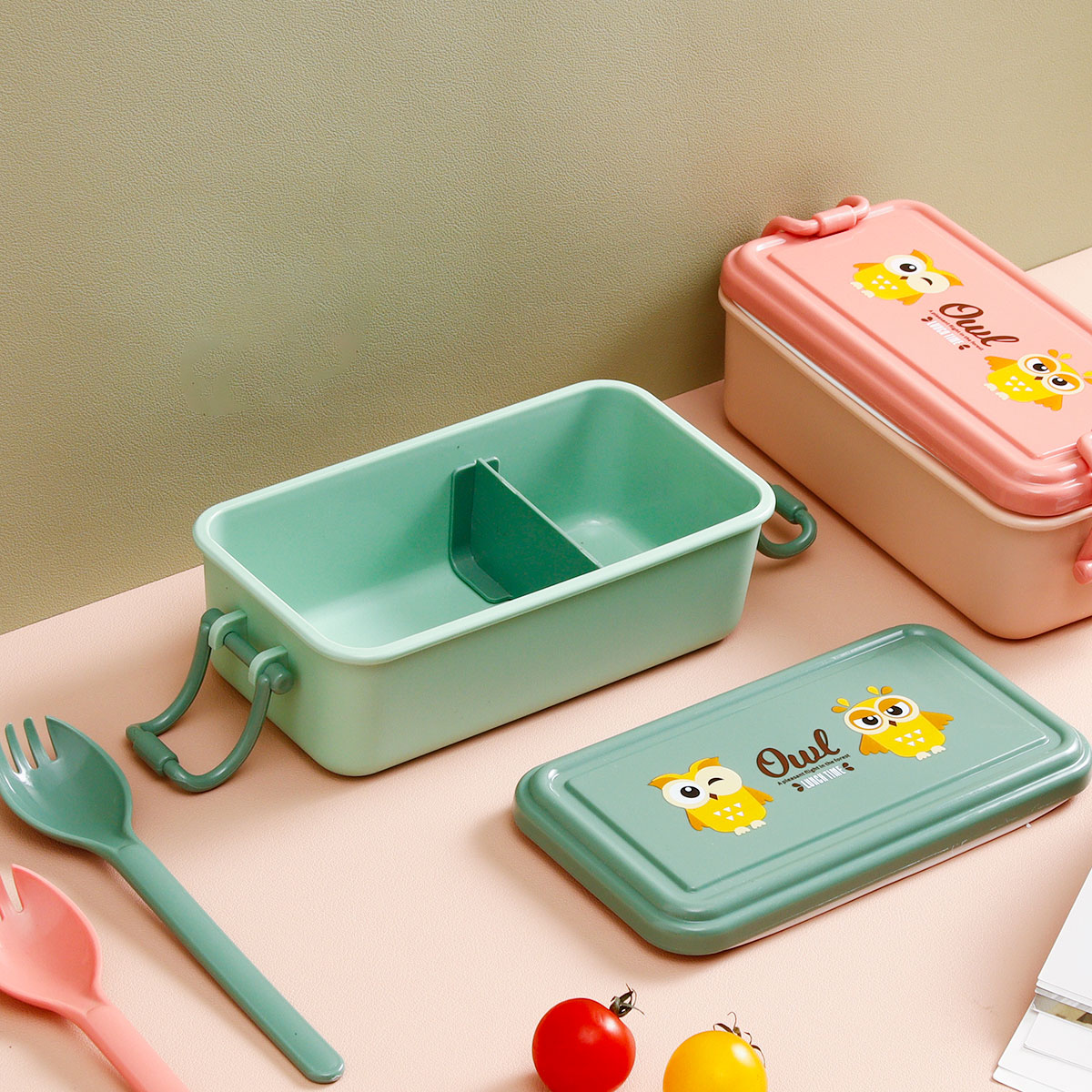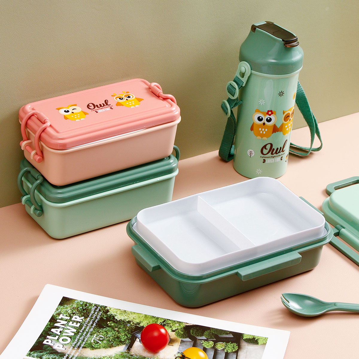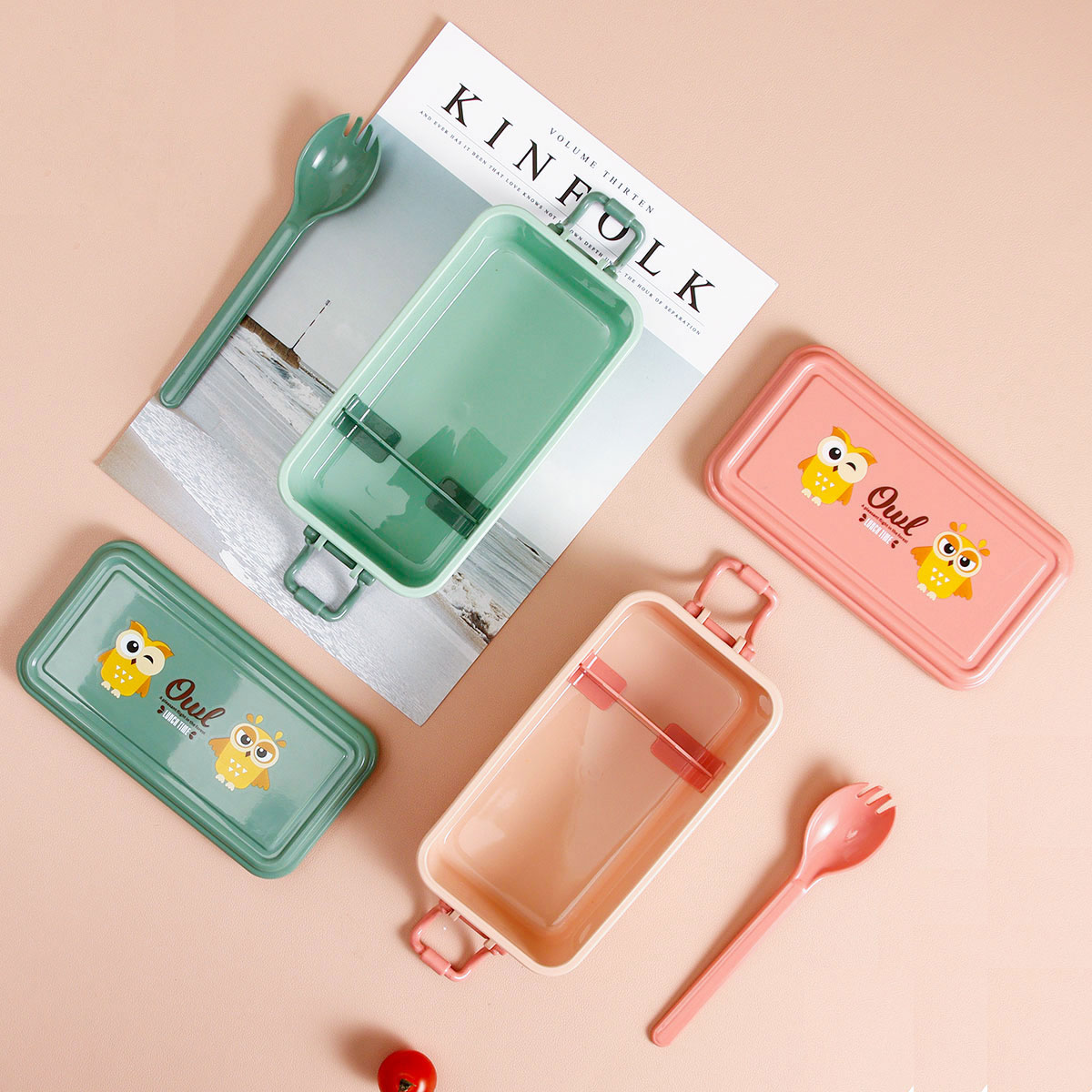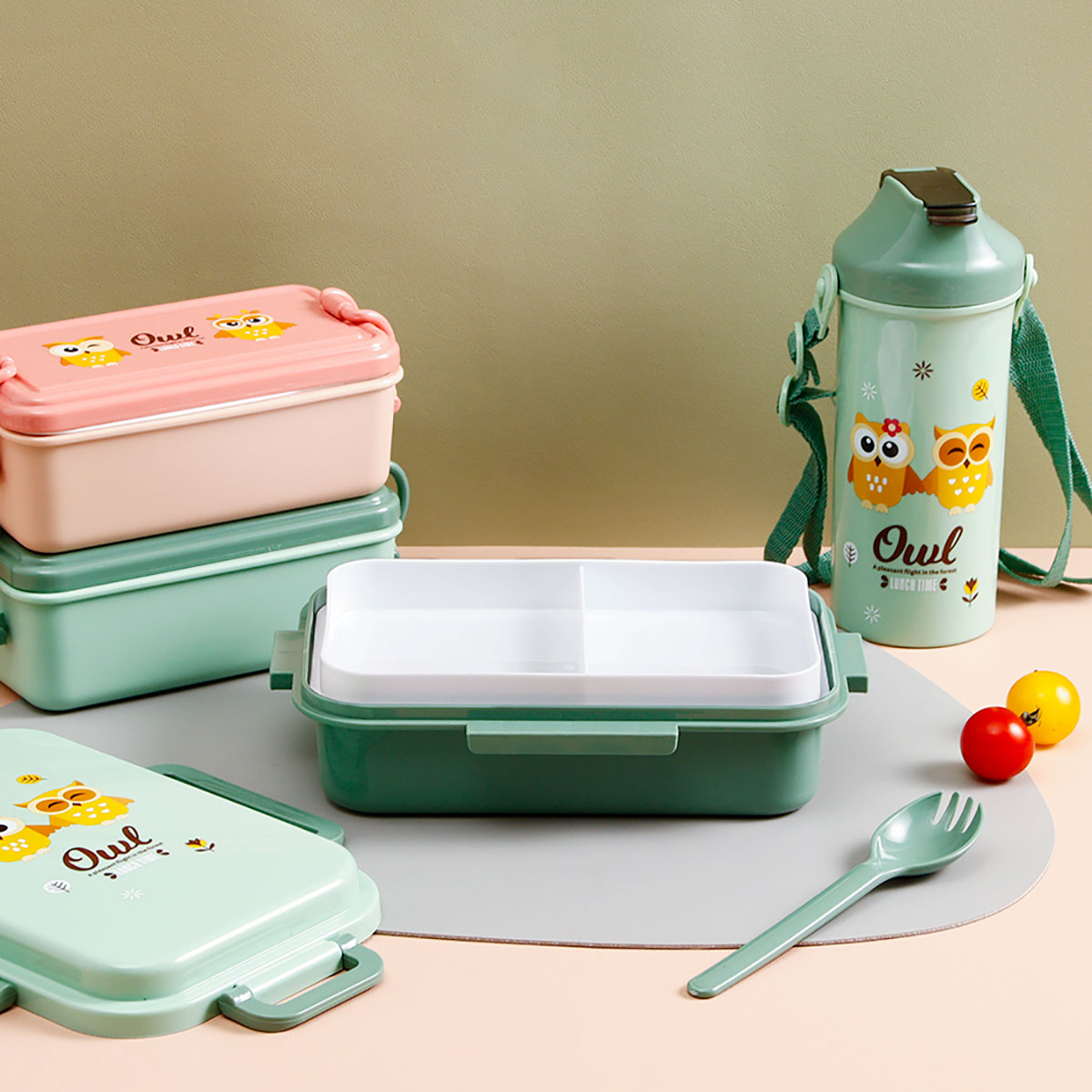日式便當(dāng)盒/四扣便當(dāng)盒+500ml卡通水壺