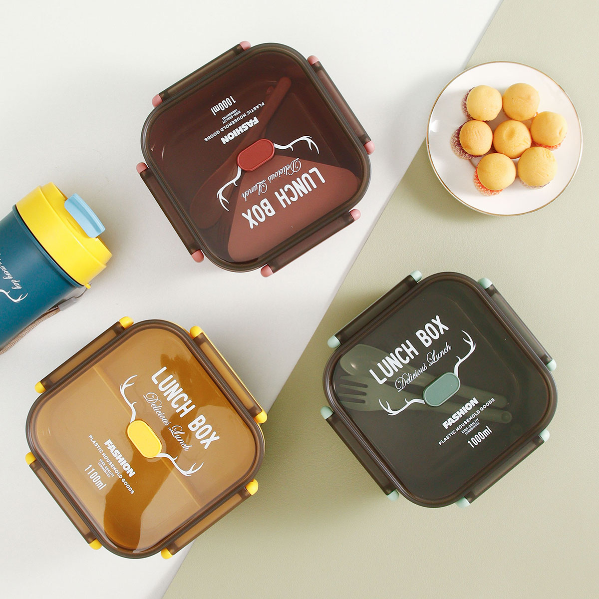 正方雙層/單層密封飯盒+圓形/八角隨行杯