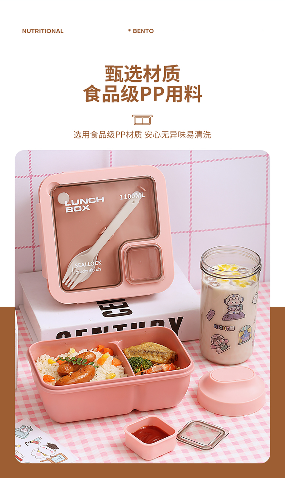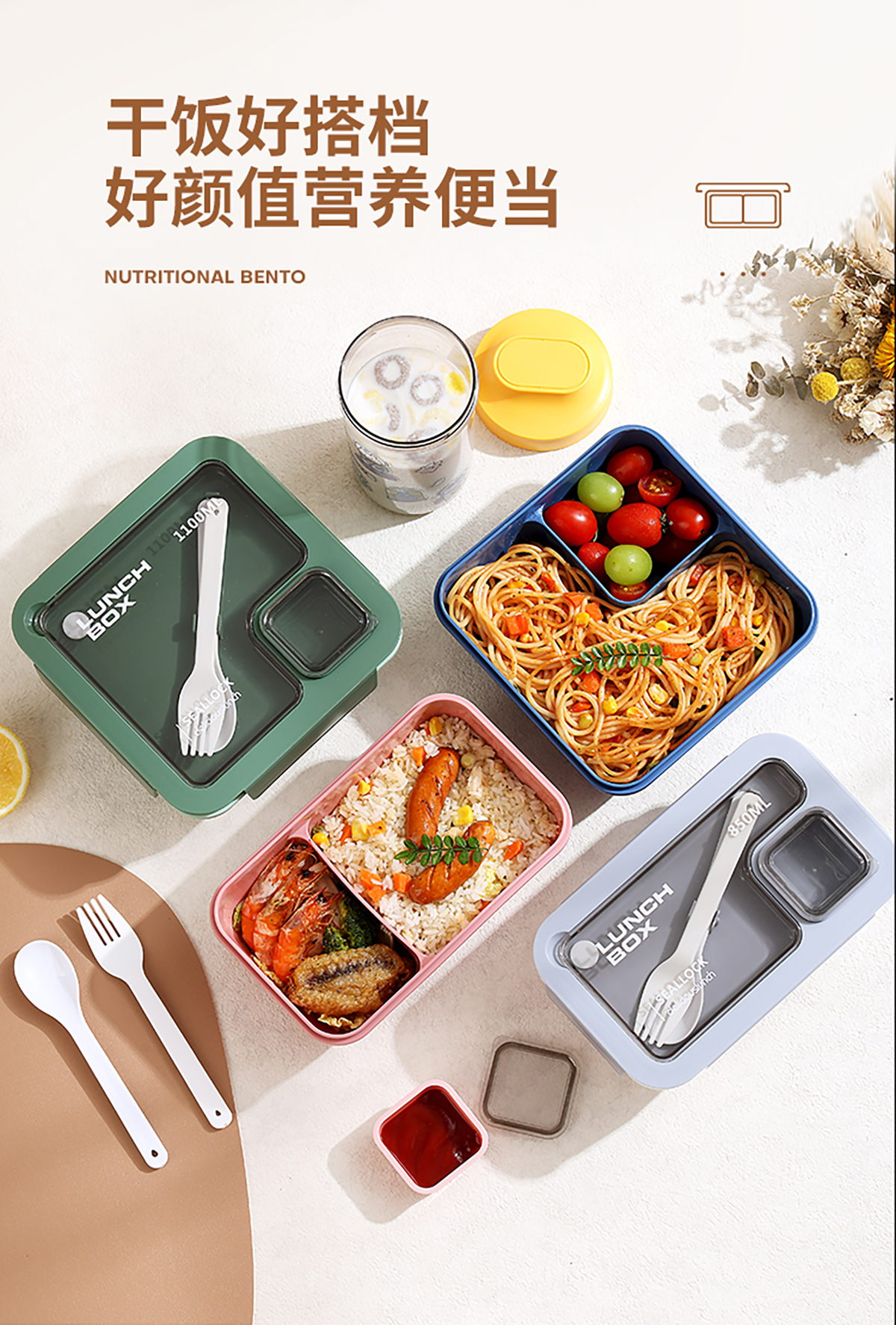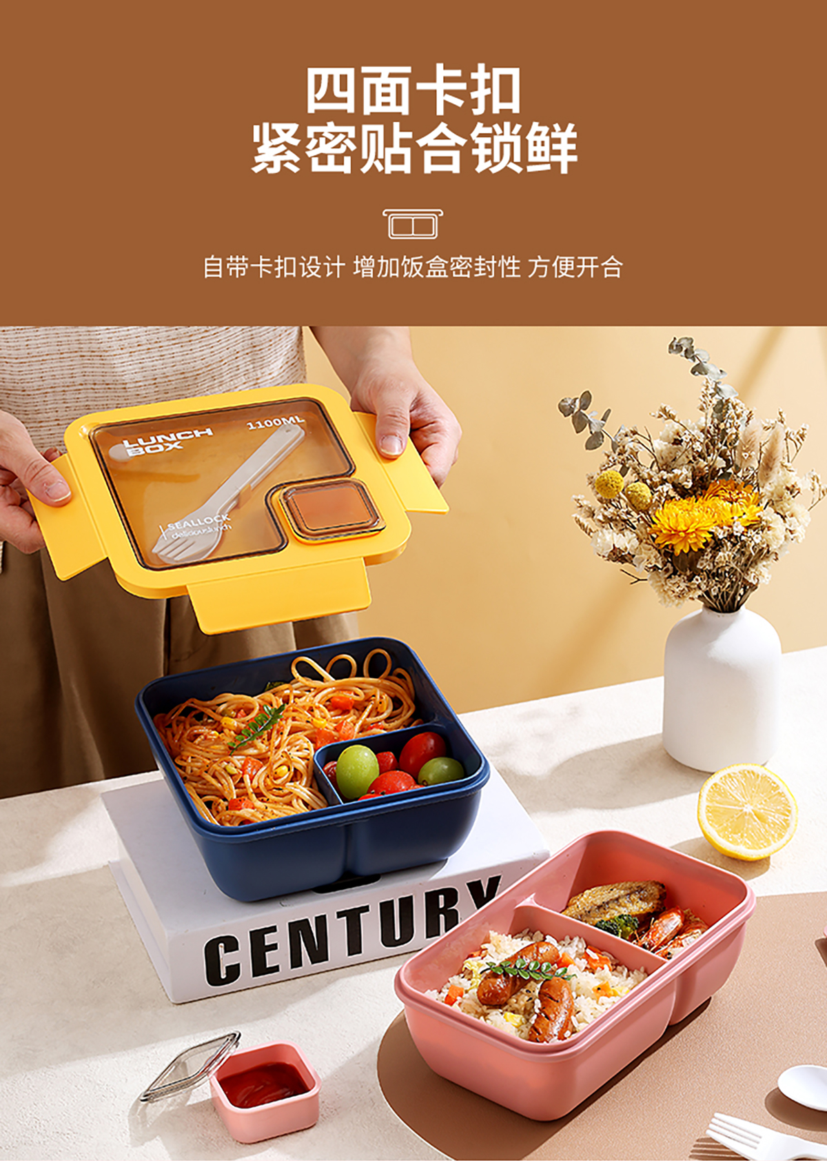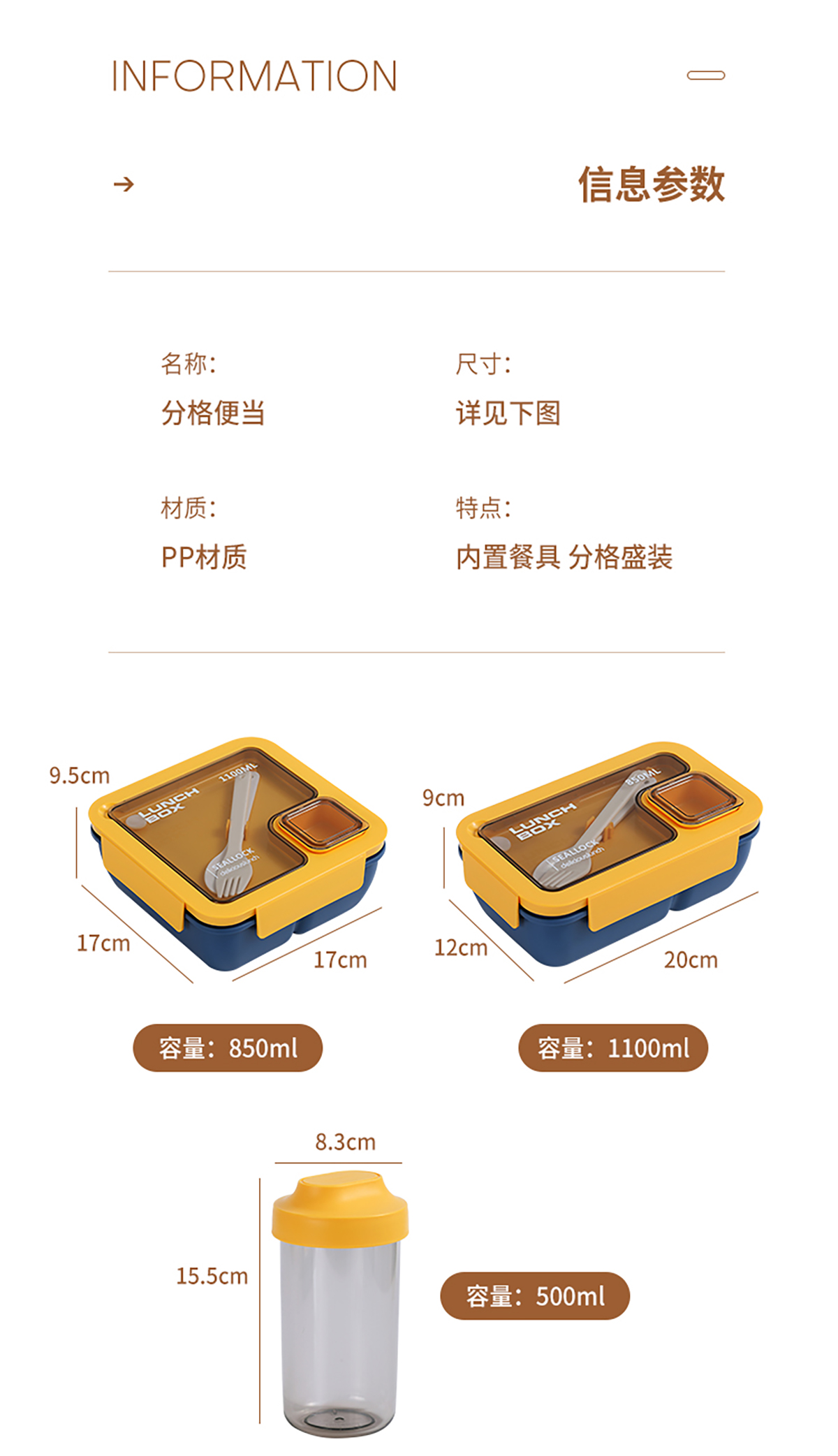 SWY-T01:長方形飯盒:195*119*79mm+水杯:直徑83*高155mm