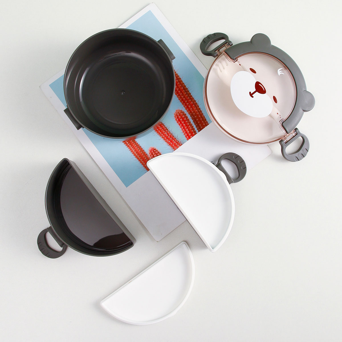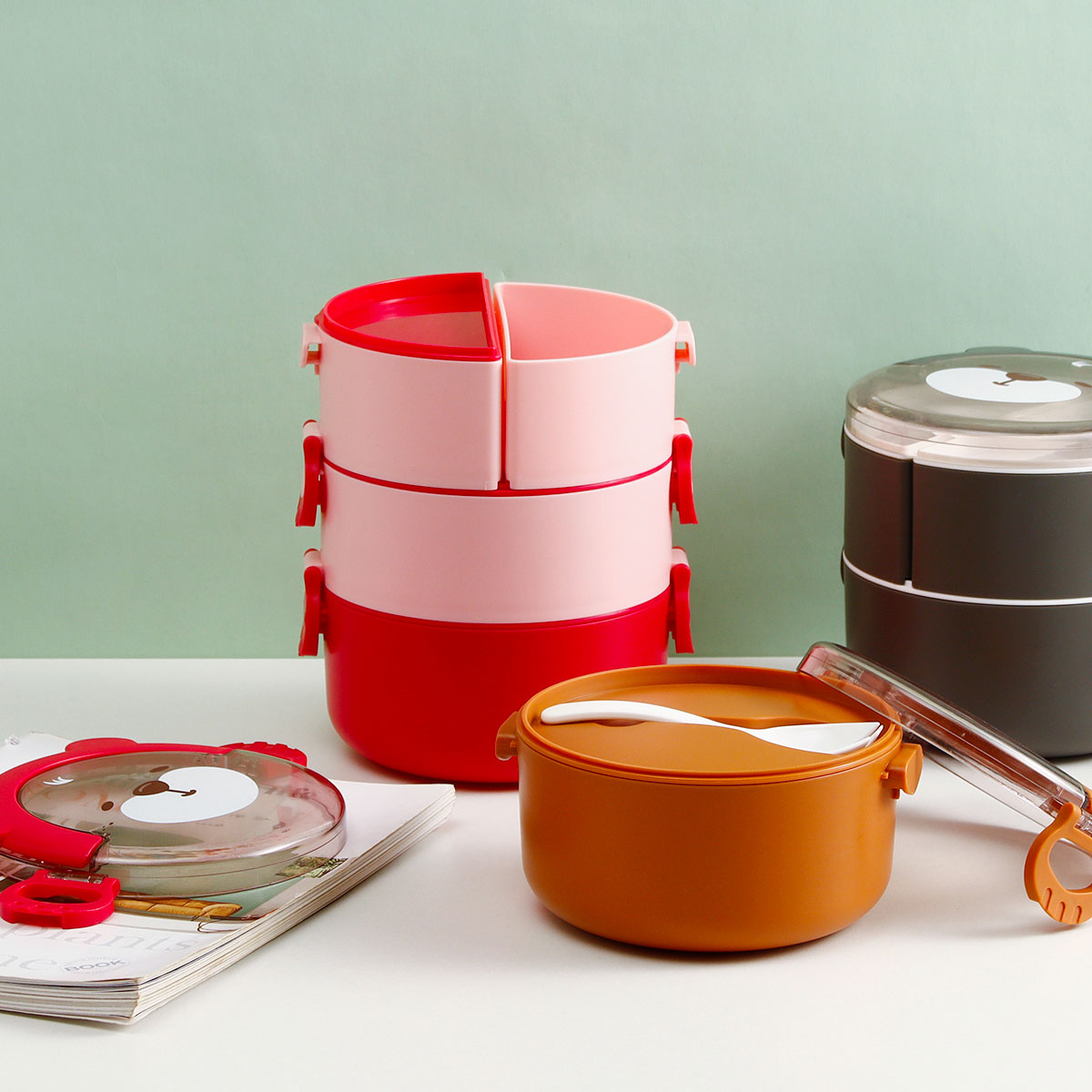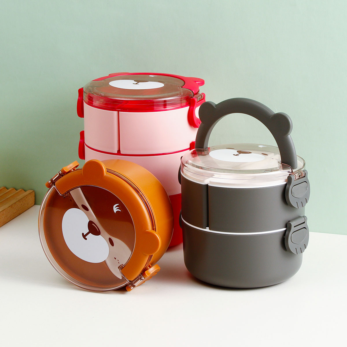 樂味熊圓形單層/雙層/三層便當(dāng)盒(通格/分格)