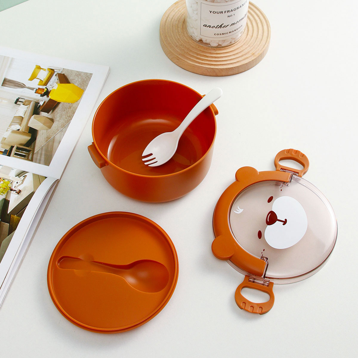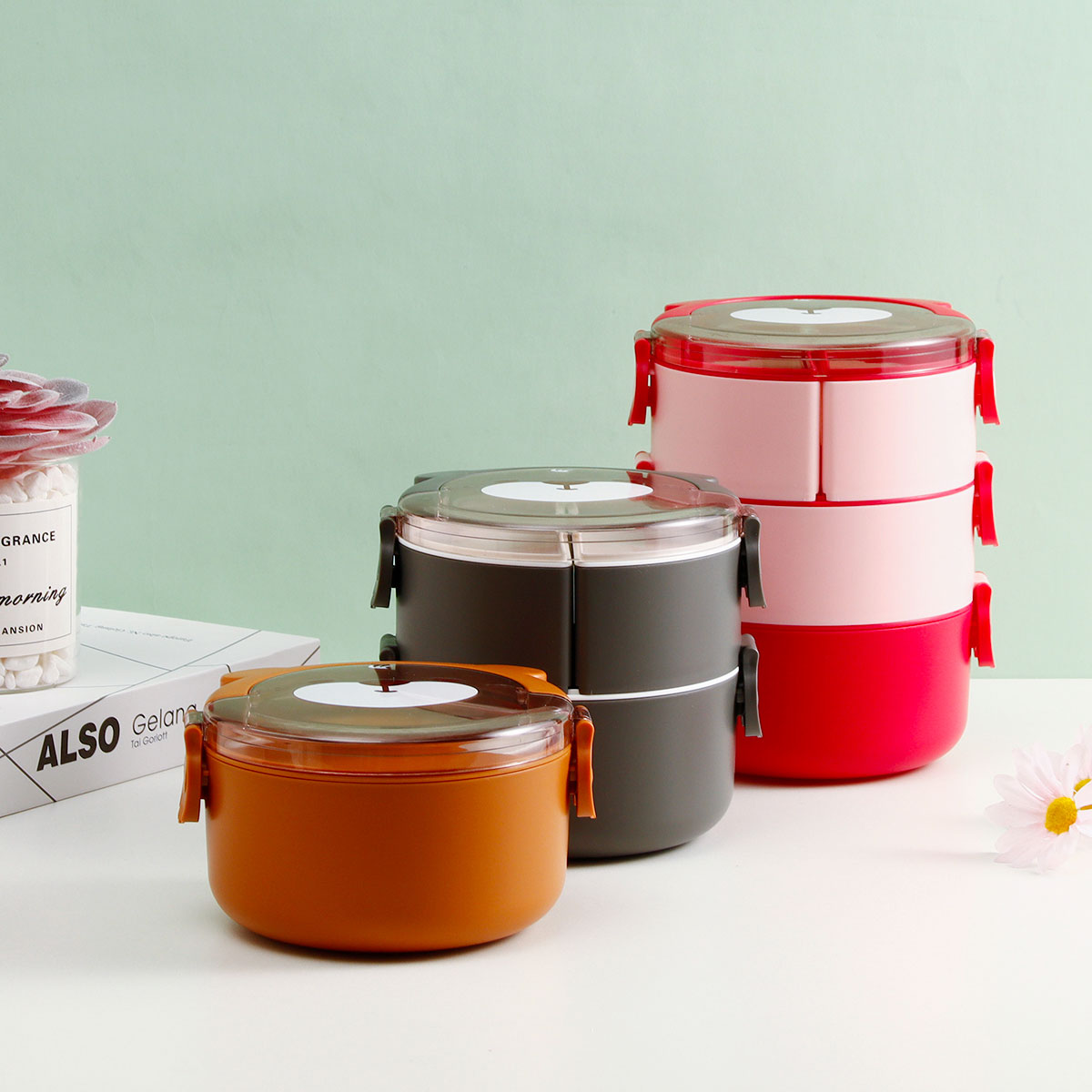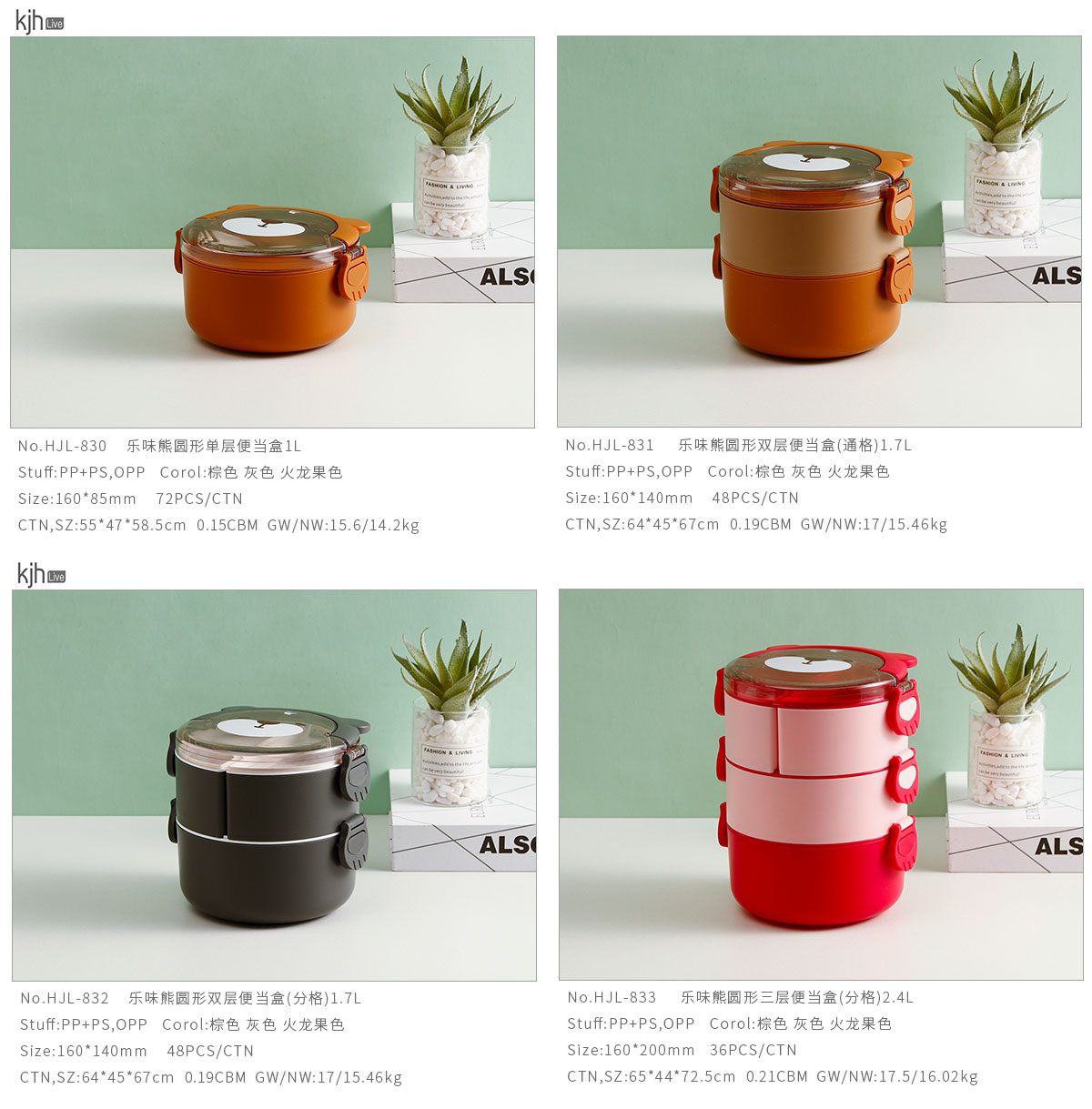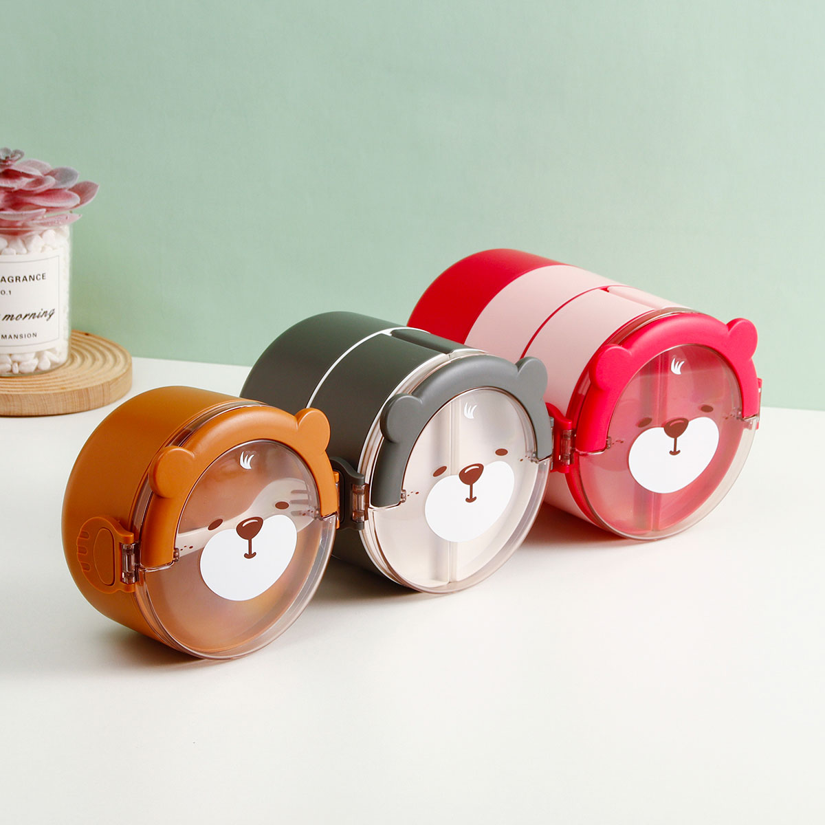樂味熊圓形單層/雙層/三層便當(dāng)盒(通格/分格)