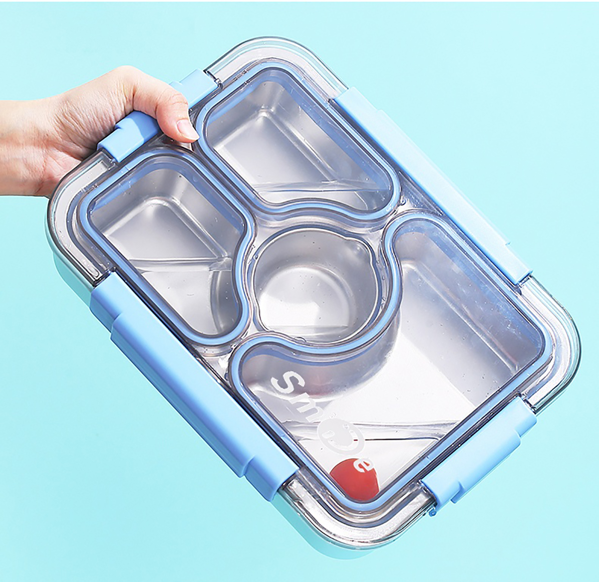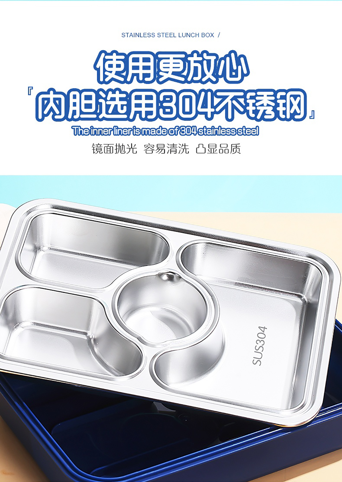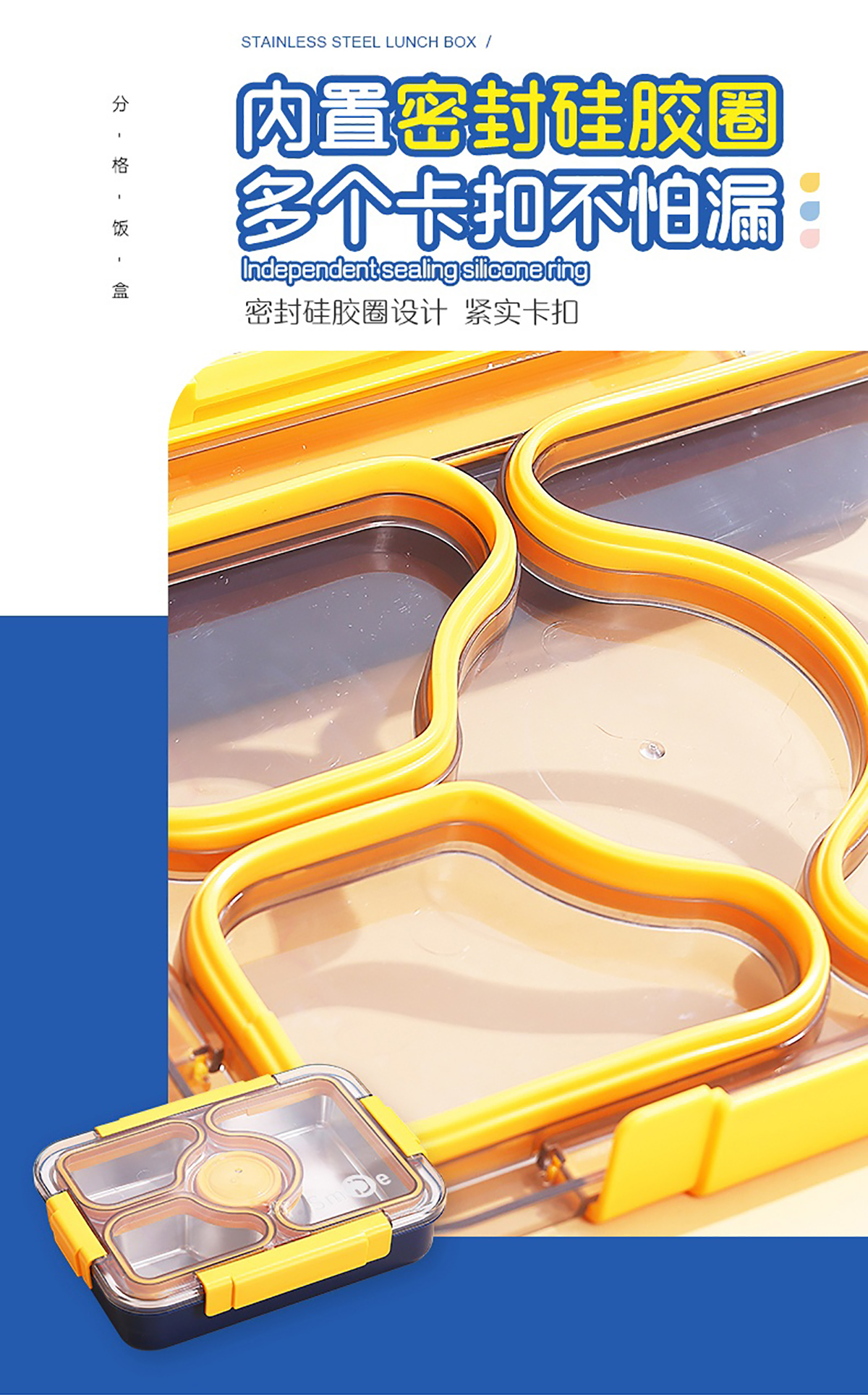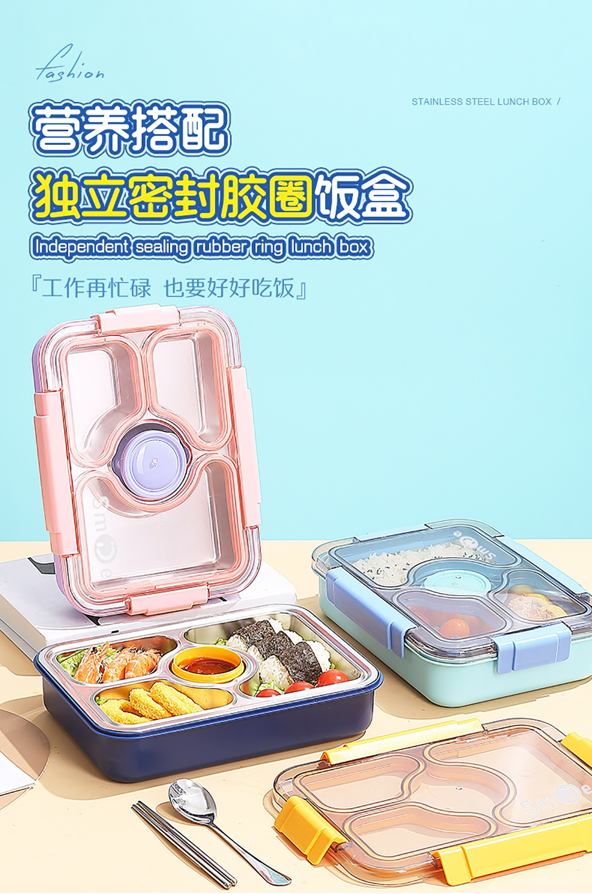 950ml獨(dú)立密封不銹鋼餐盒(3格+PP碗80ml+不銹鋼勺筷)