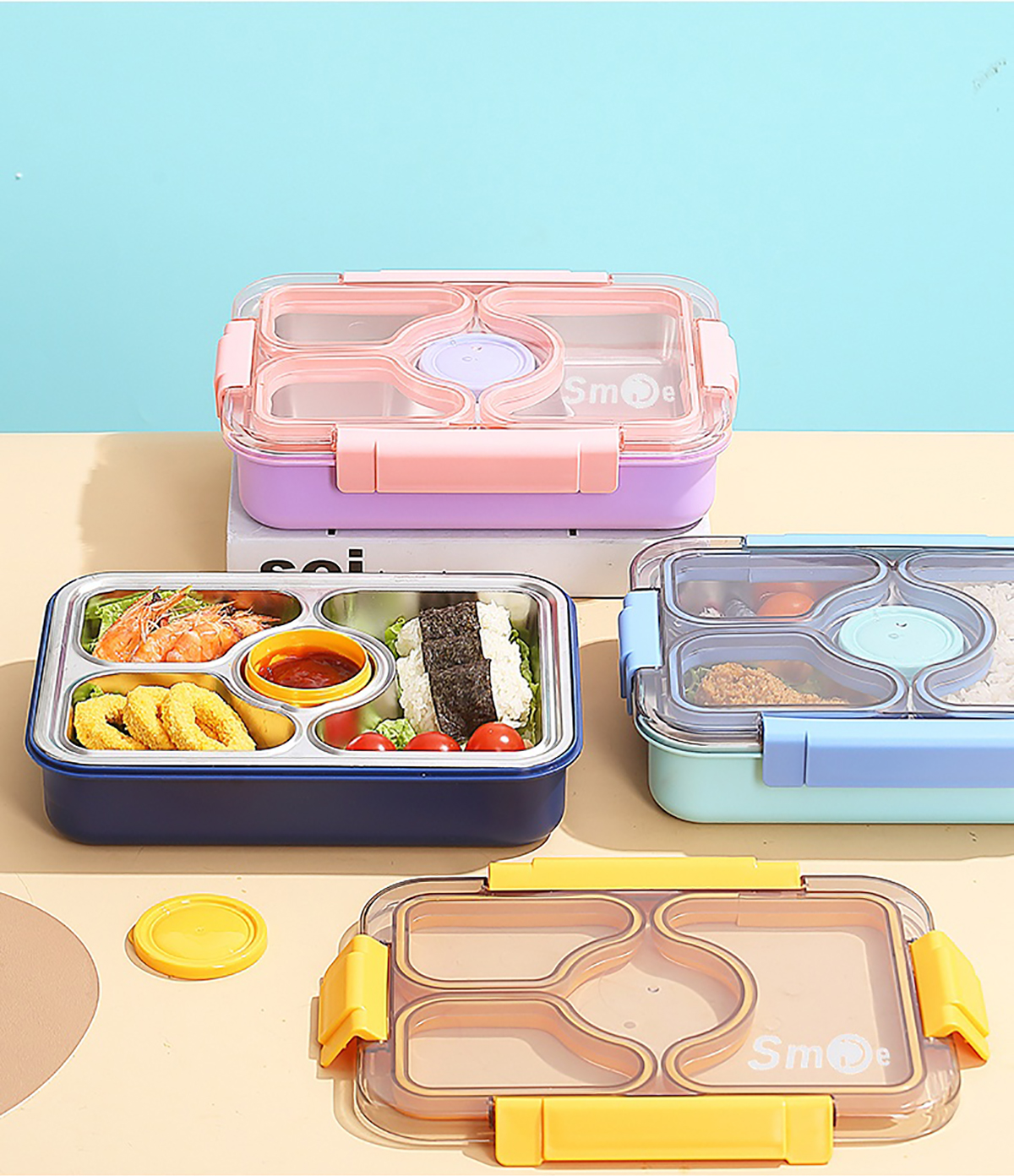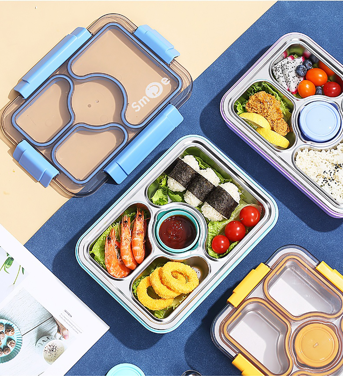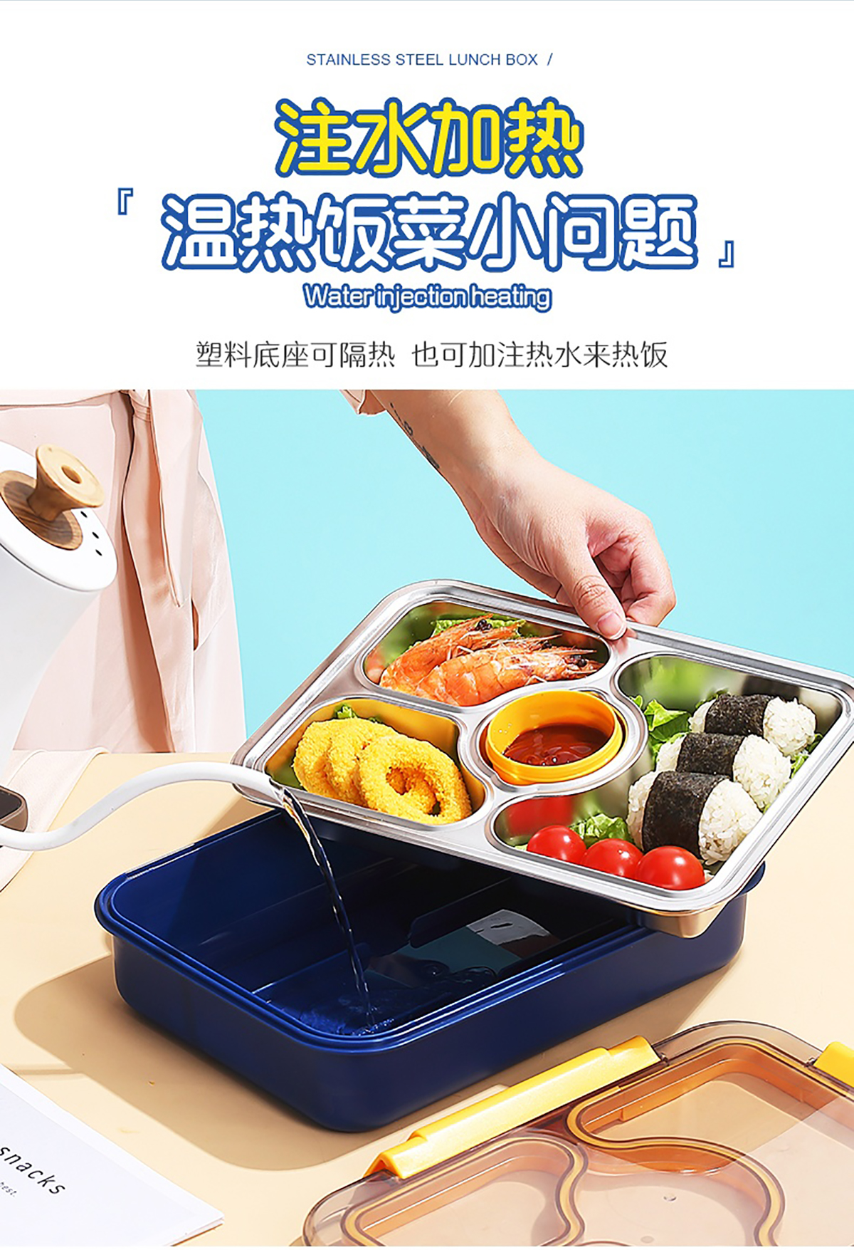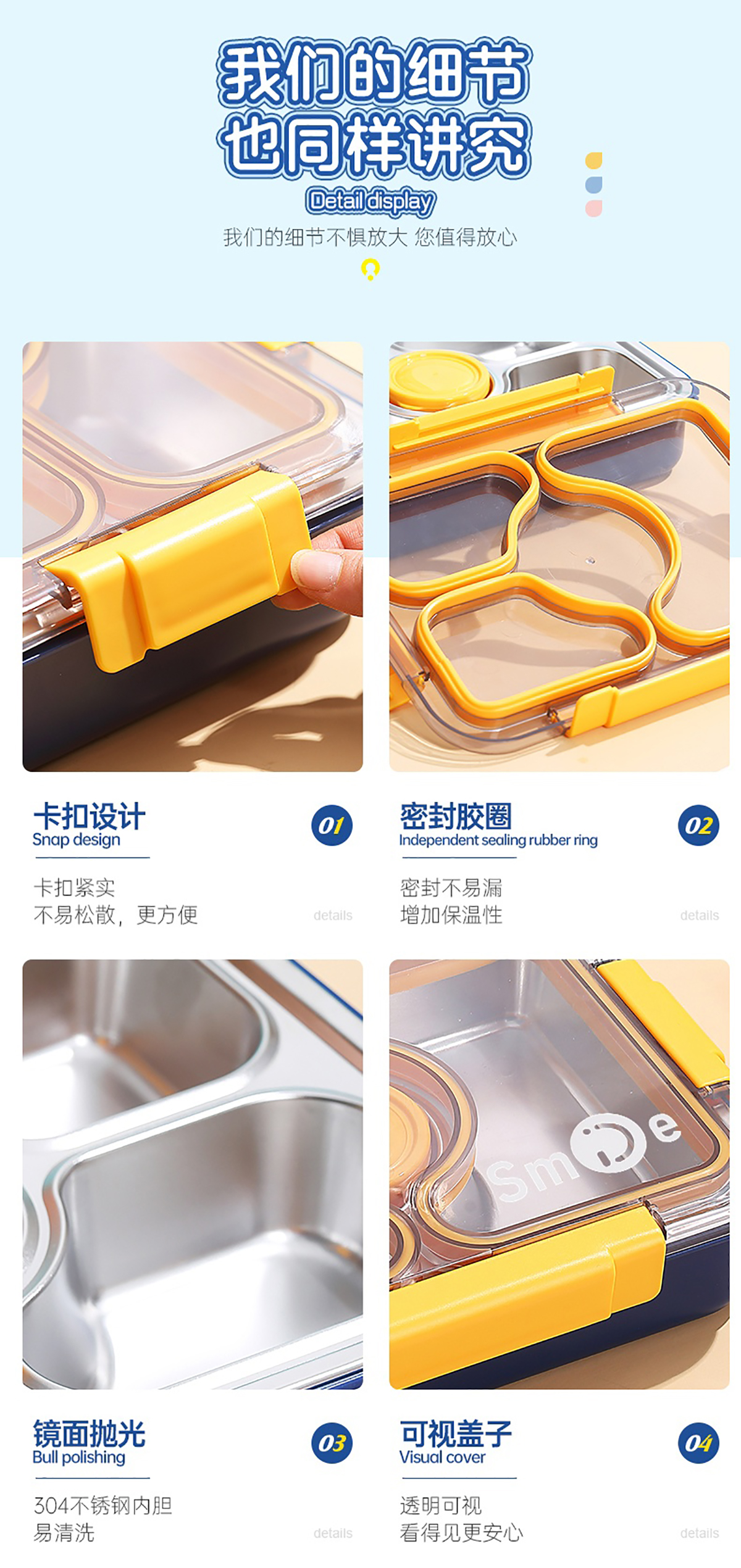 950ml獨(dú)立密封不銹鋼餐盒(3格+PP碗80ml+不銹鋼勺筷)