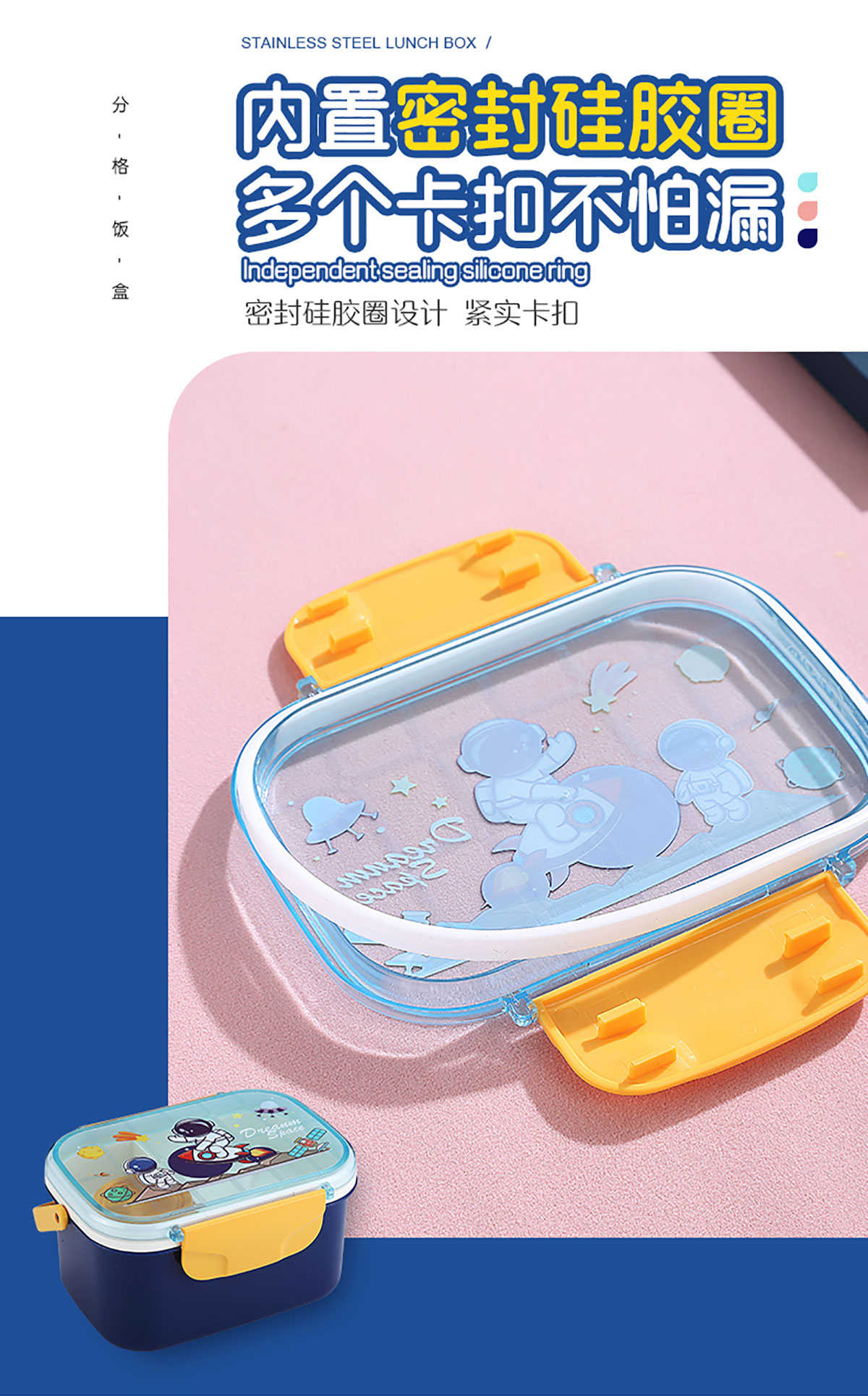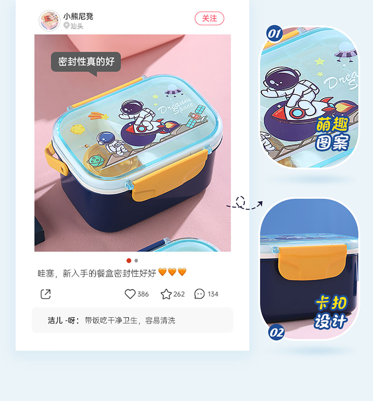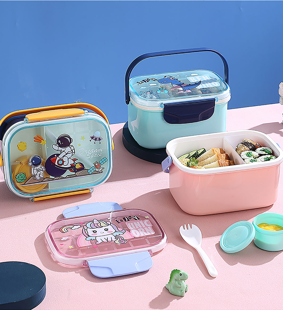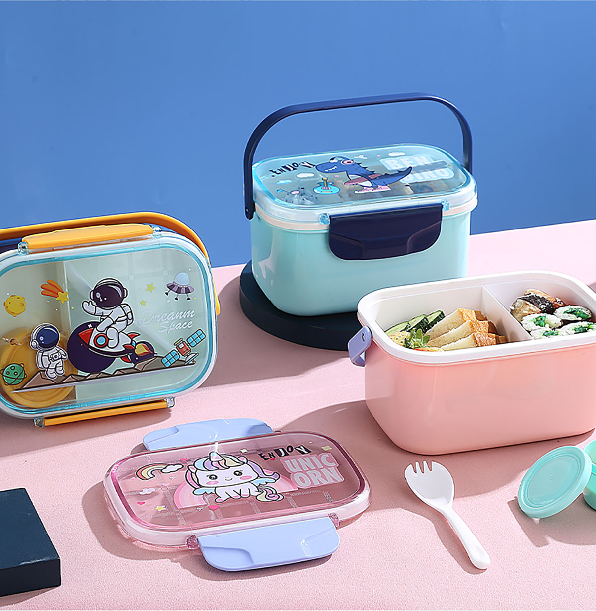 萌趣密封手提雙層餐盒(1600ml+沙拉杯80ml+PP勺子)