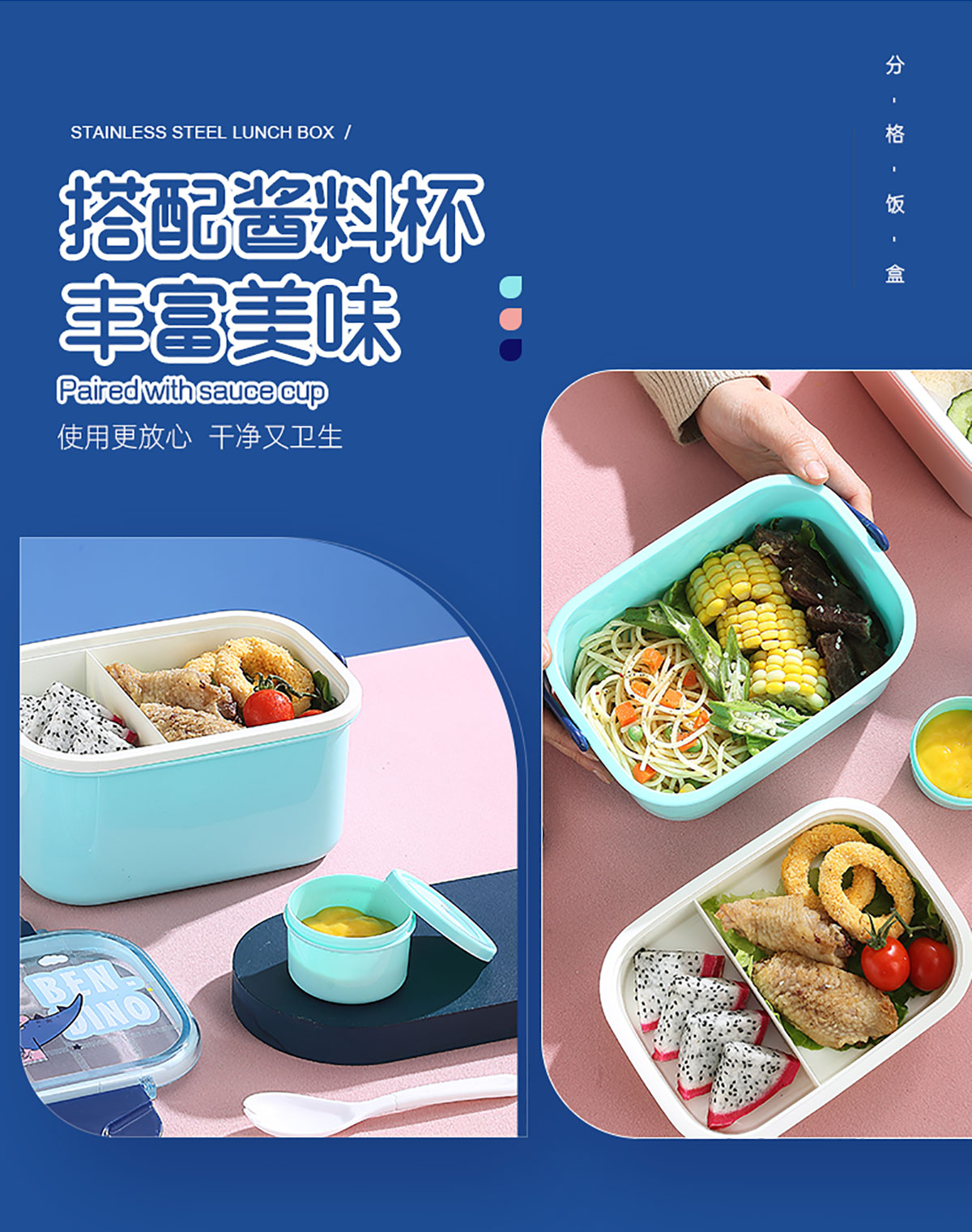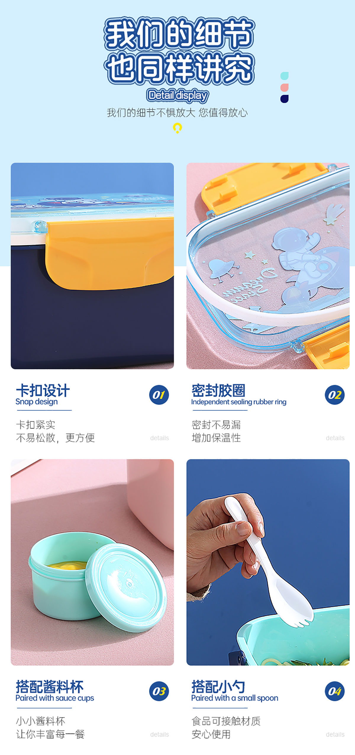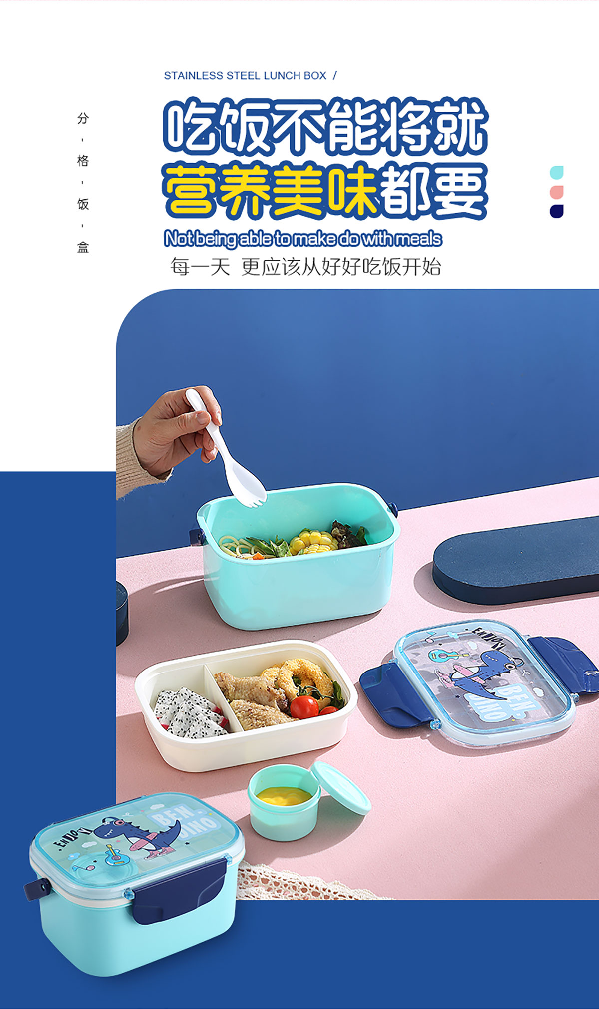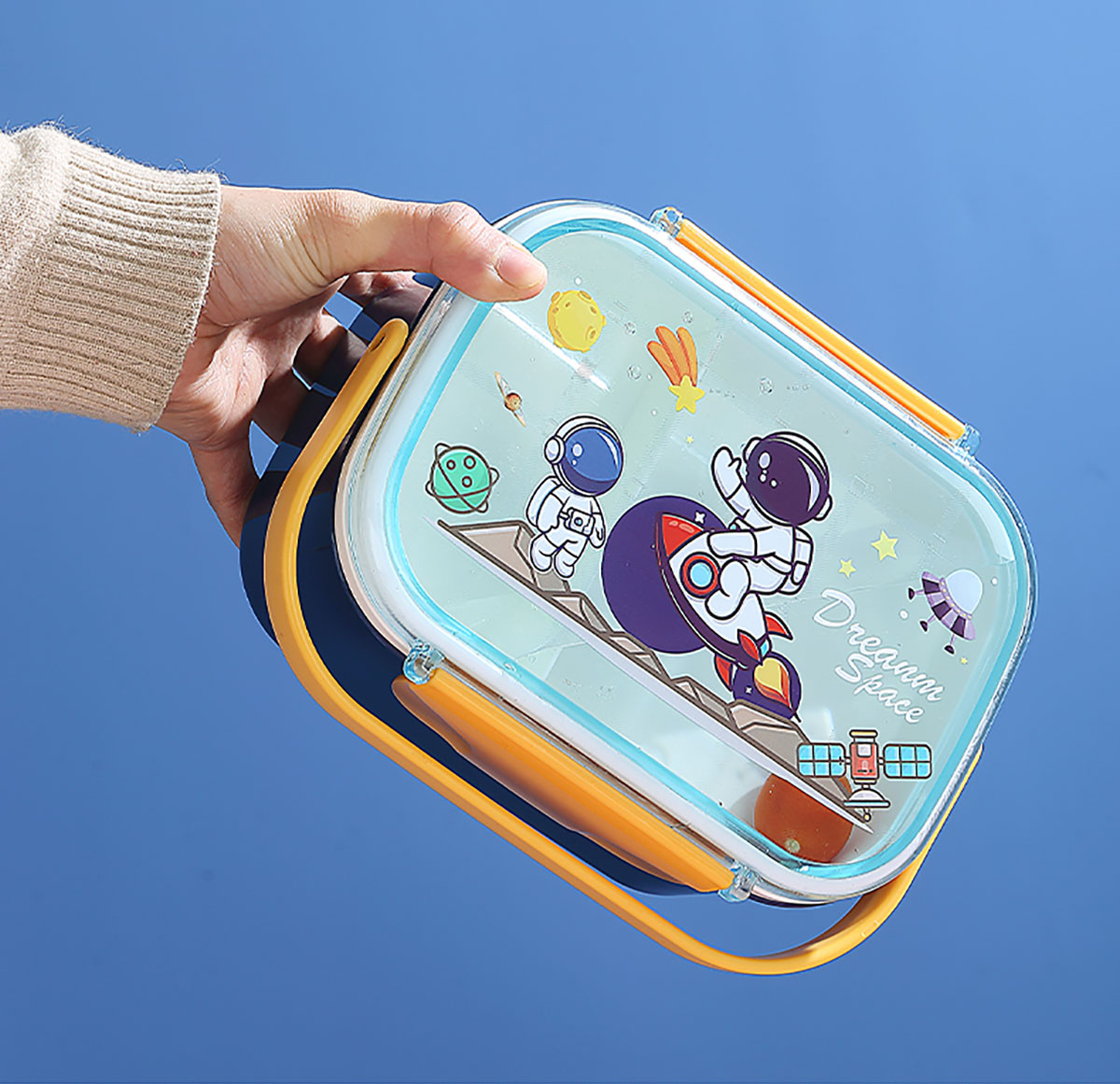 萌趣密封手提雙層餐盒(1600ml+沙拉杯80ml+PP勺子)