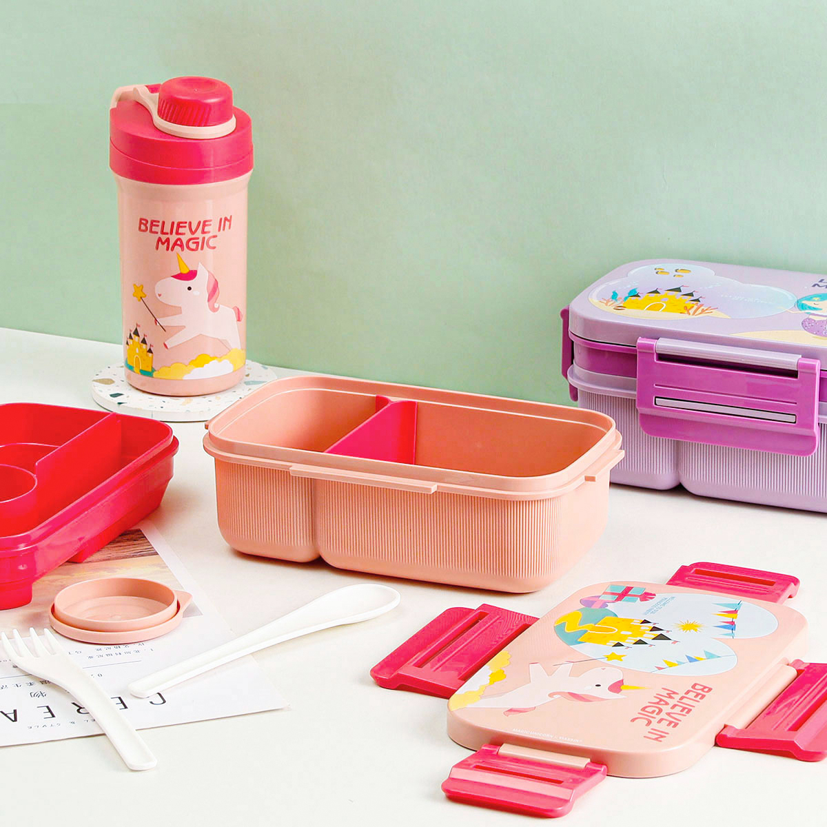 Size: SH-A355B(套裝):飯盒:218*140*105mm/水壺:Φ82(105)*182mm SH-A356B(單個):218*140*105mm
