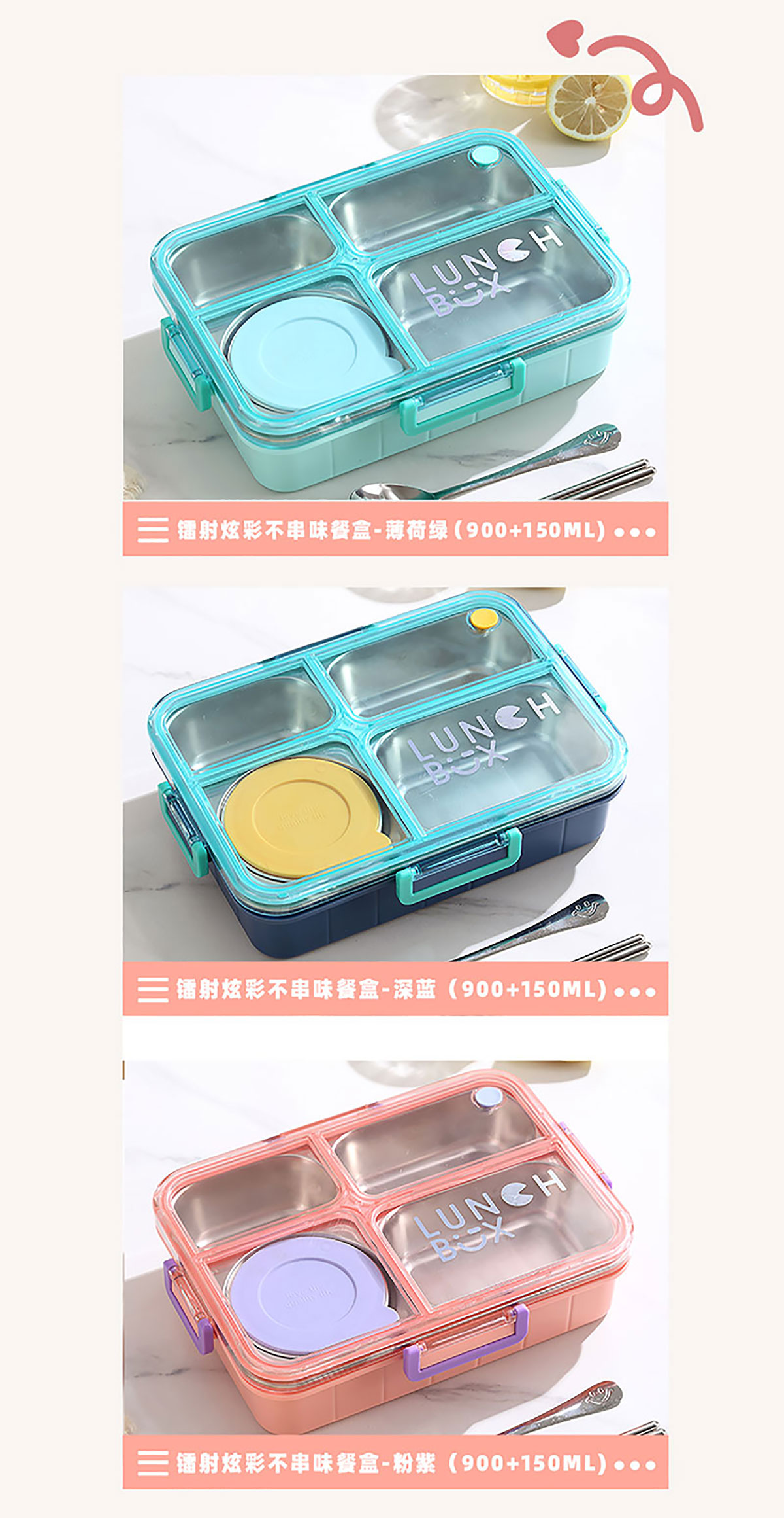 AQX-2622:262*193*65mm/不銹鋼4格900ml+醬料杯80ml