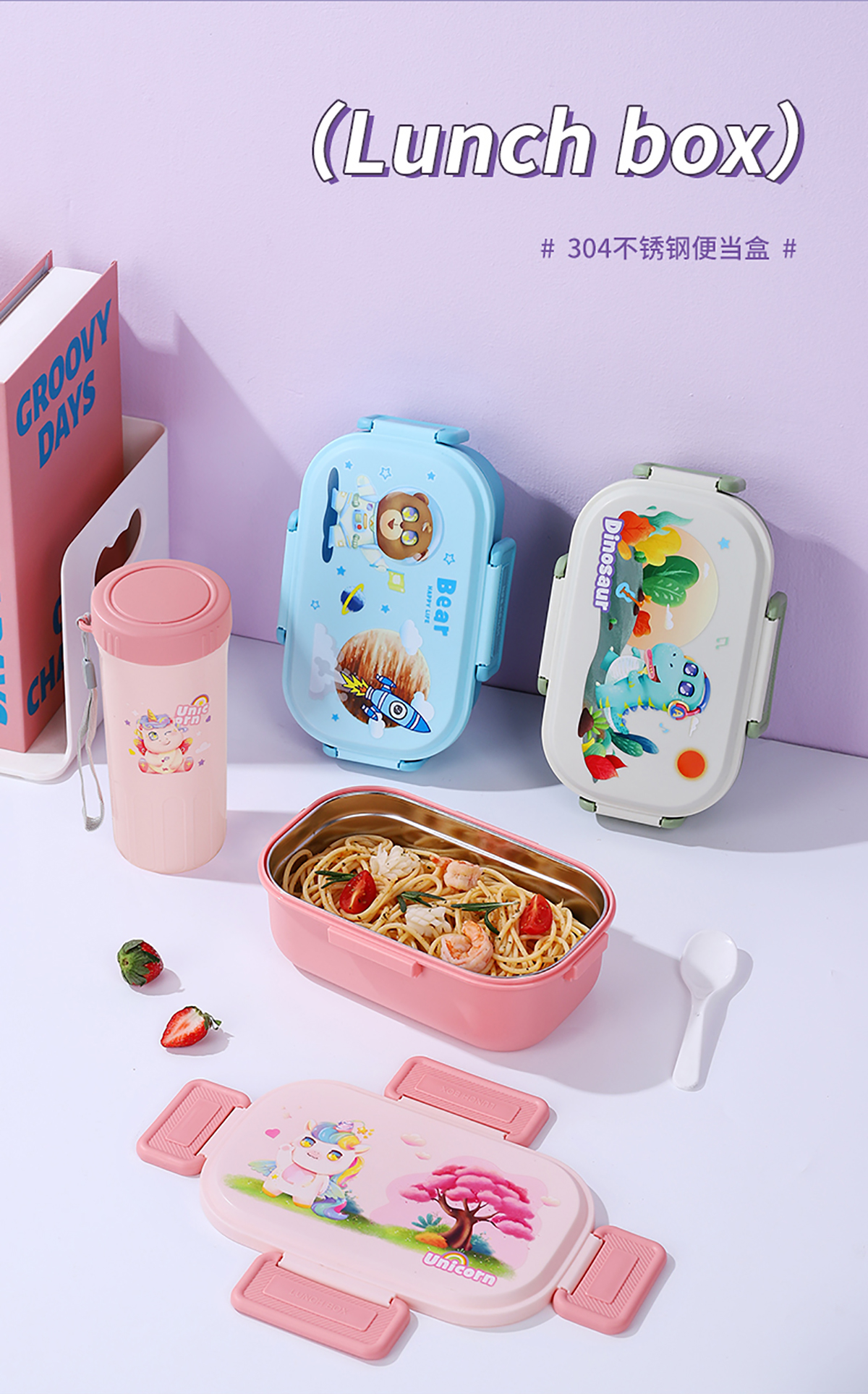 卡通飯盒(201/304單格/雙格內(nèi)膽)