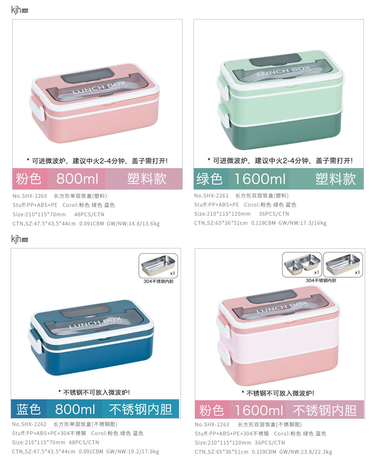長方形單層雙層飯盒(塑料款/不銹鋼款)