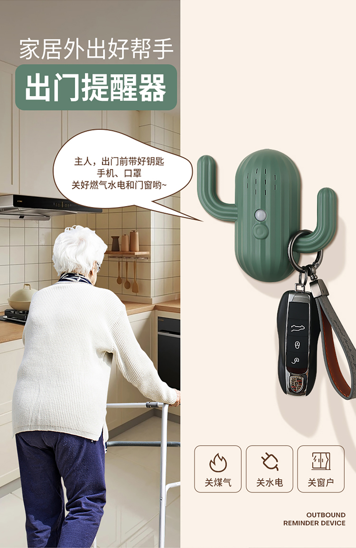 仙人掌出門提醒器